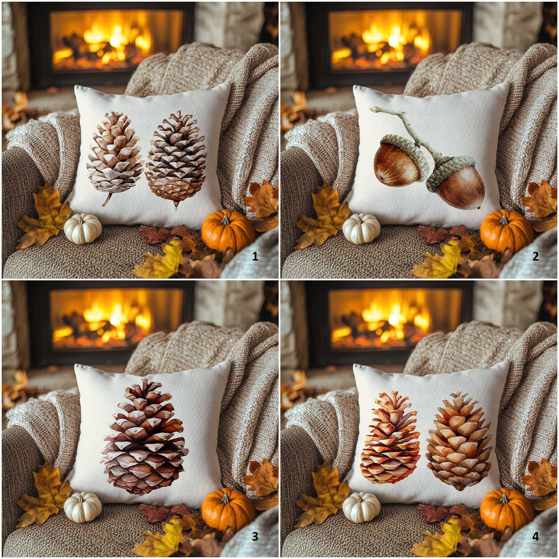 ⚓ These square decorative fall/autumn/Thanksgiving throw pillow covers with Pinecone and Acorn prints;