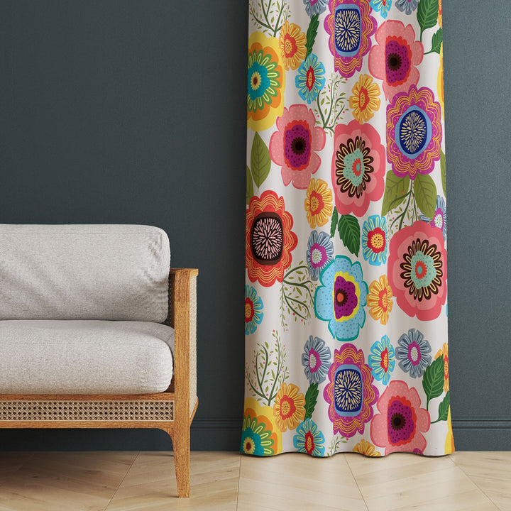 This high quality window curtain with colorful flower prints;