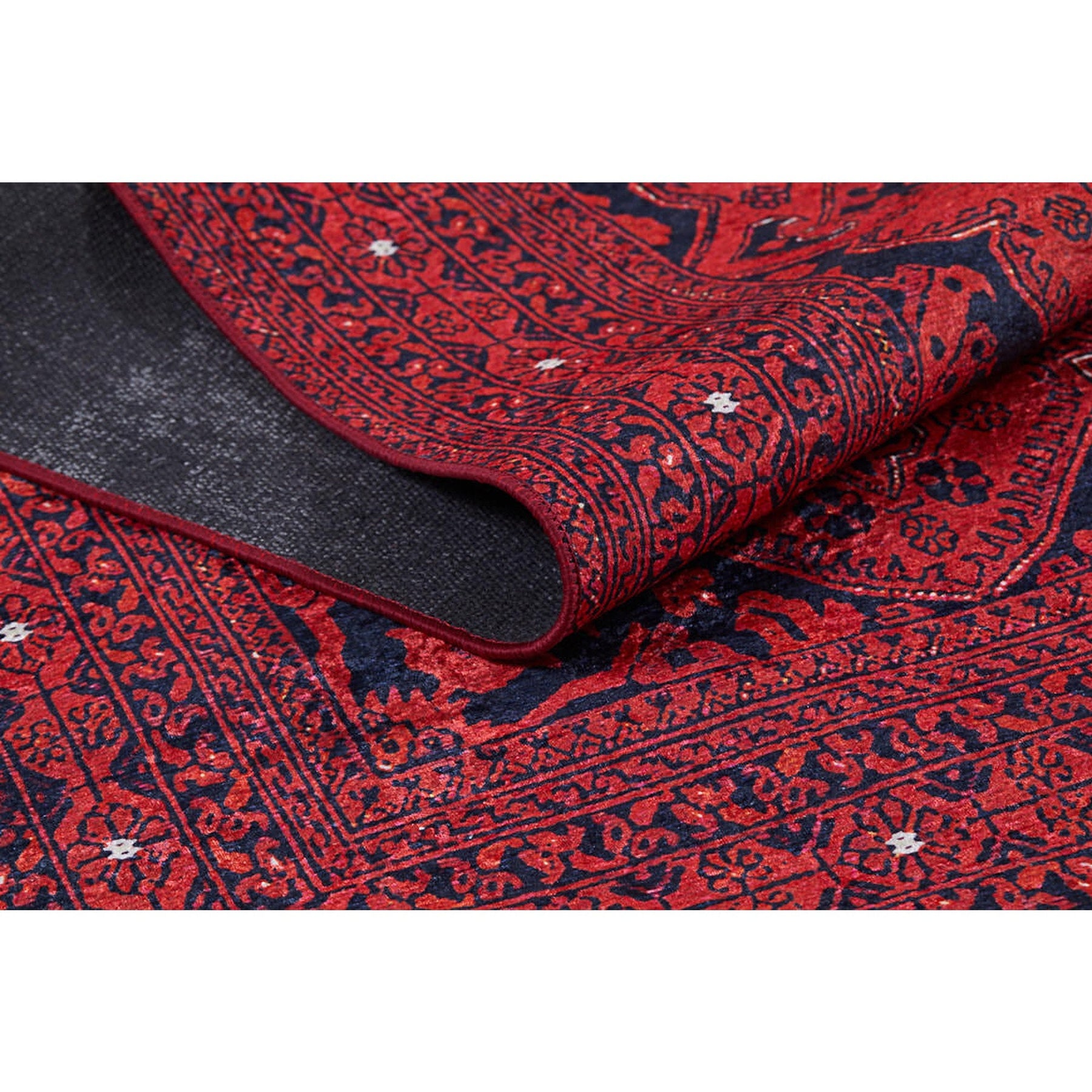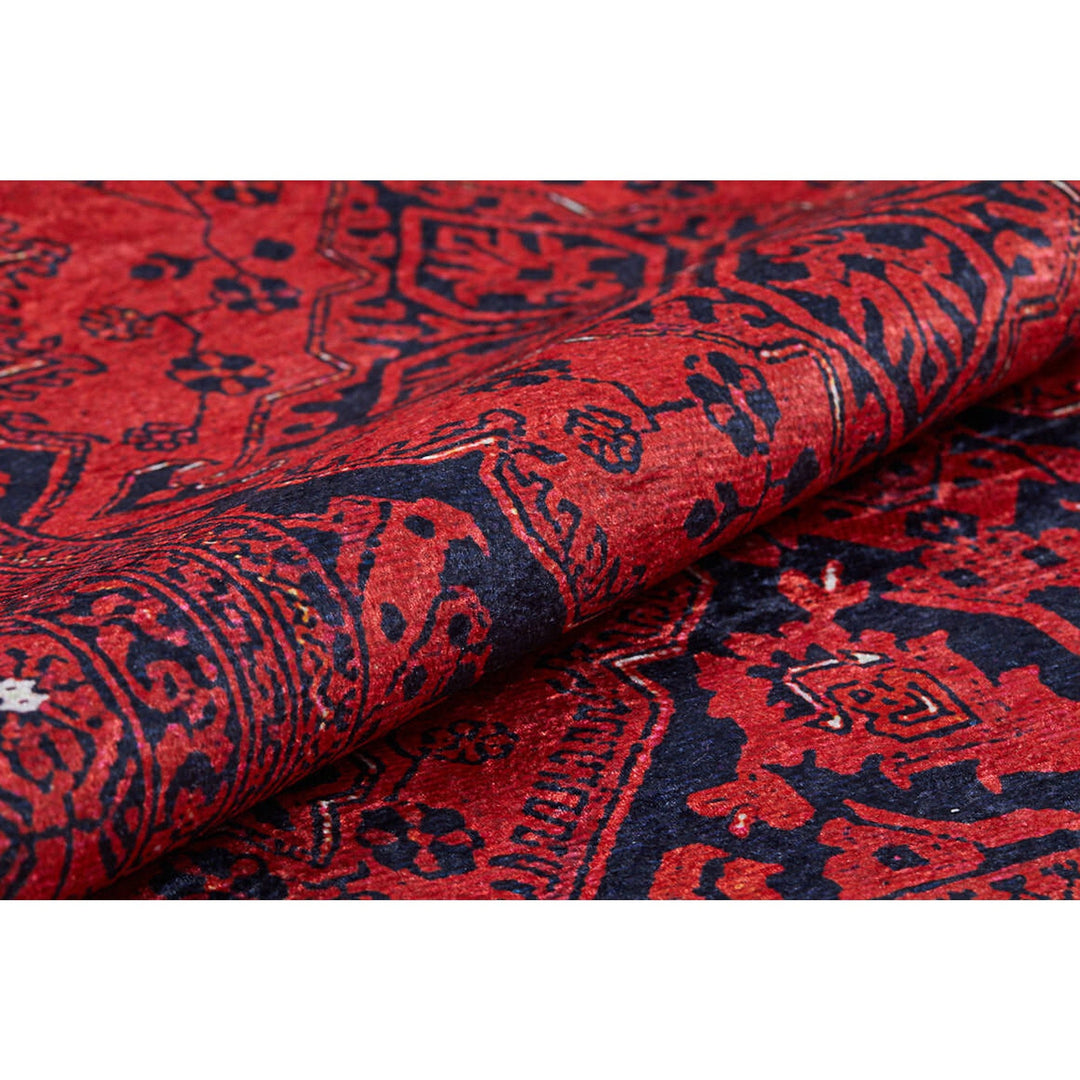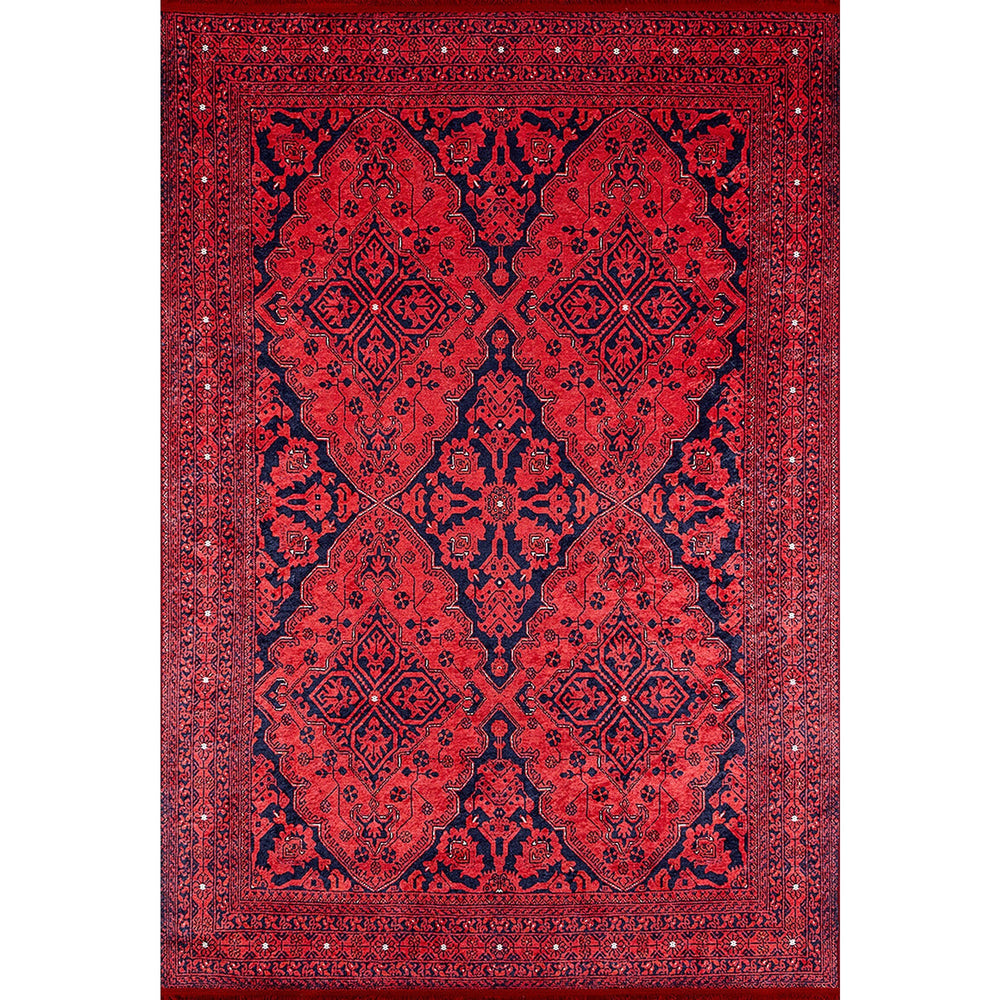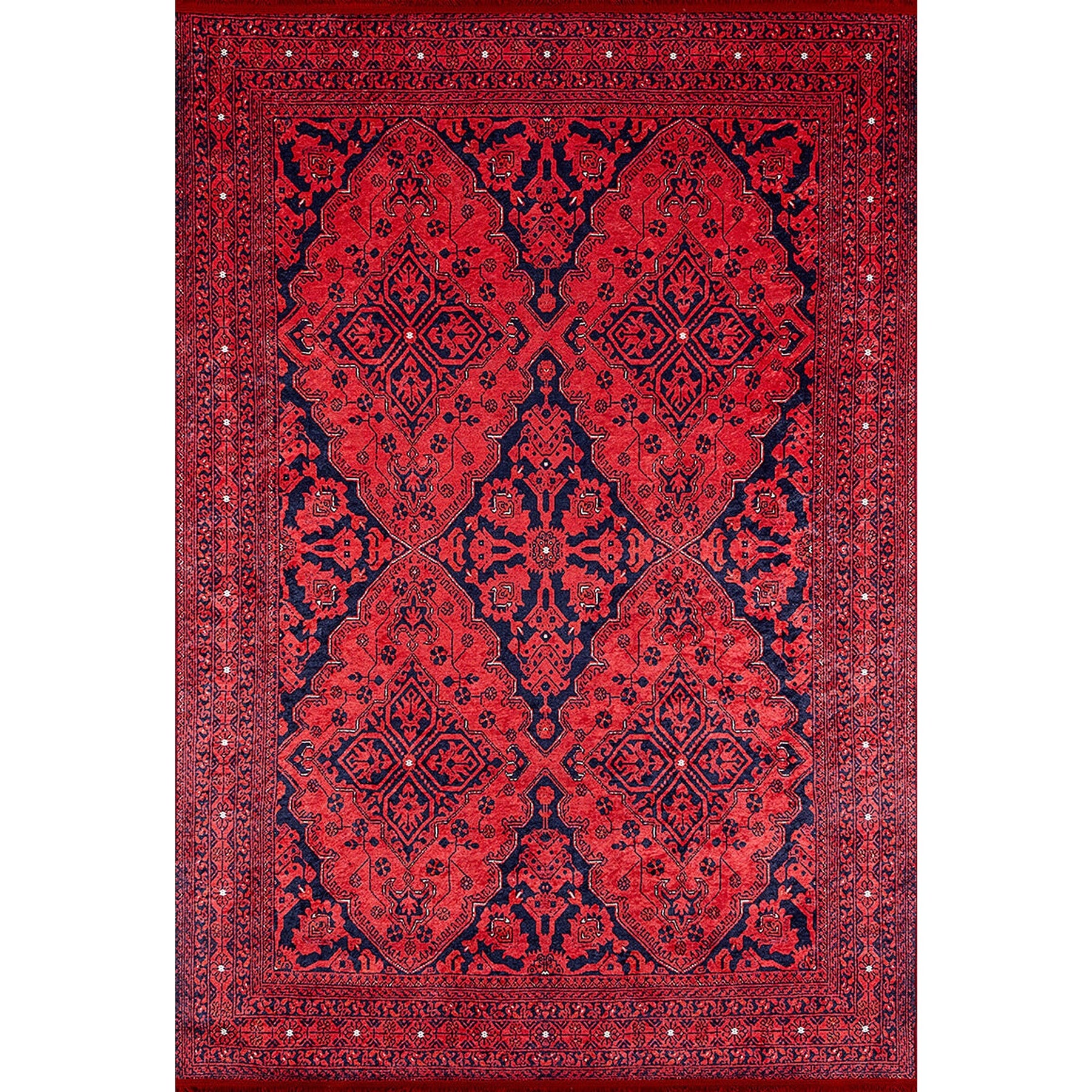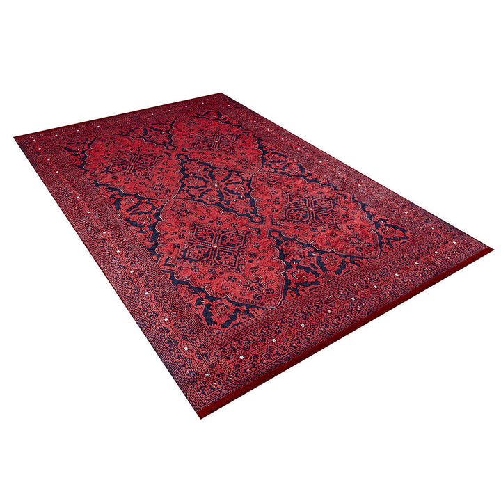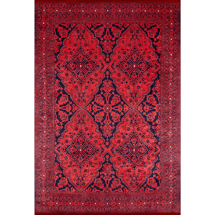This elegant Machine-Washable floor rug with Ethnic Red Pattern;