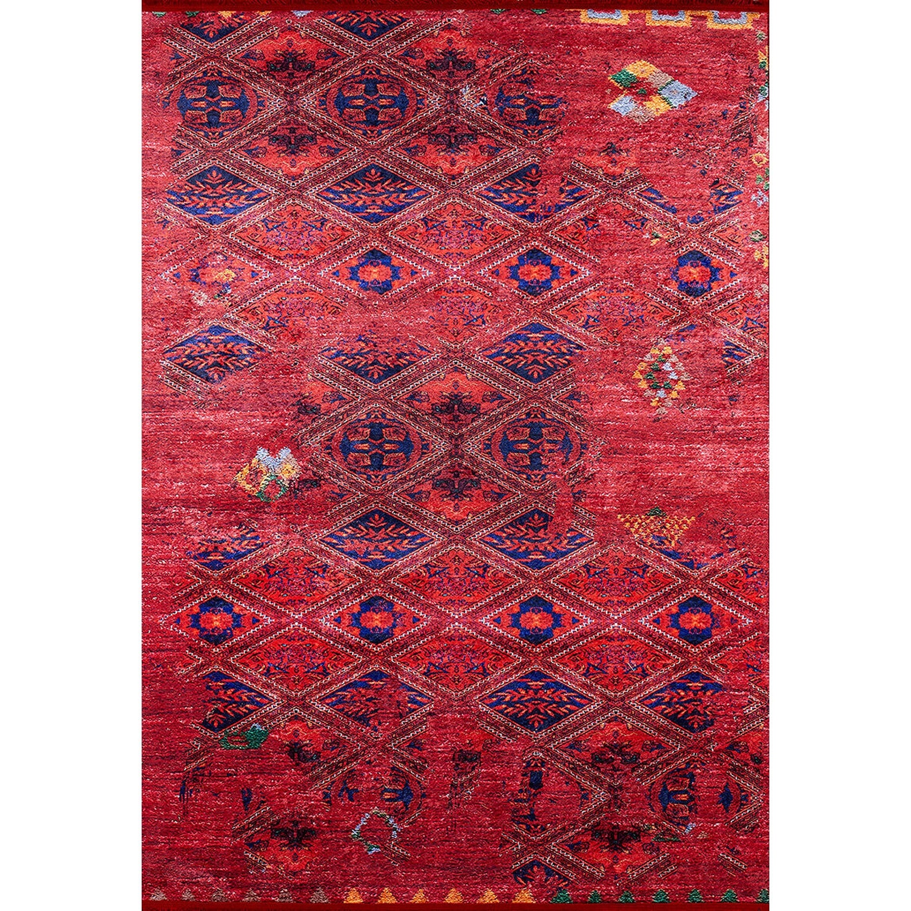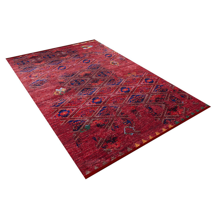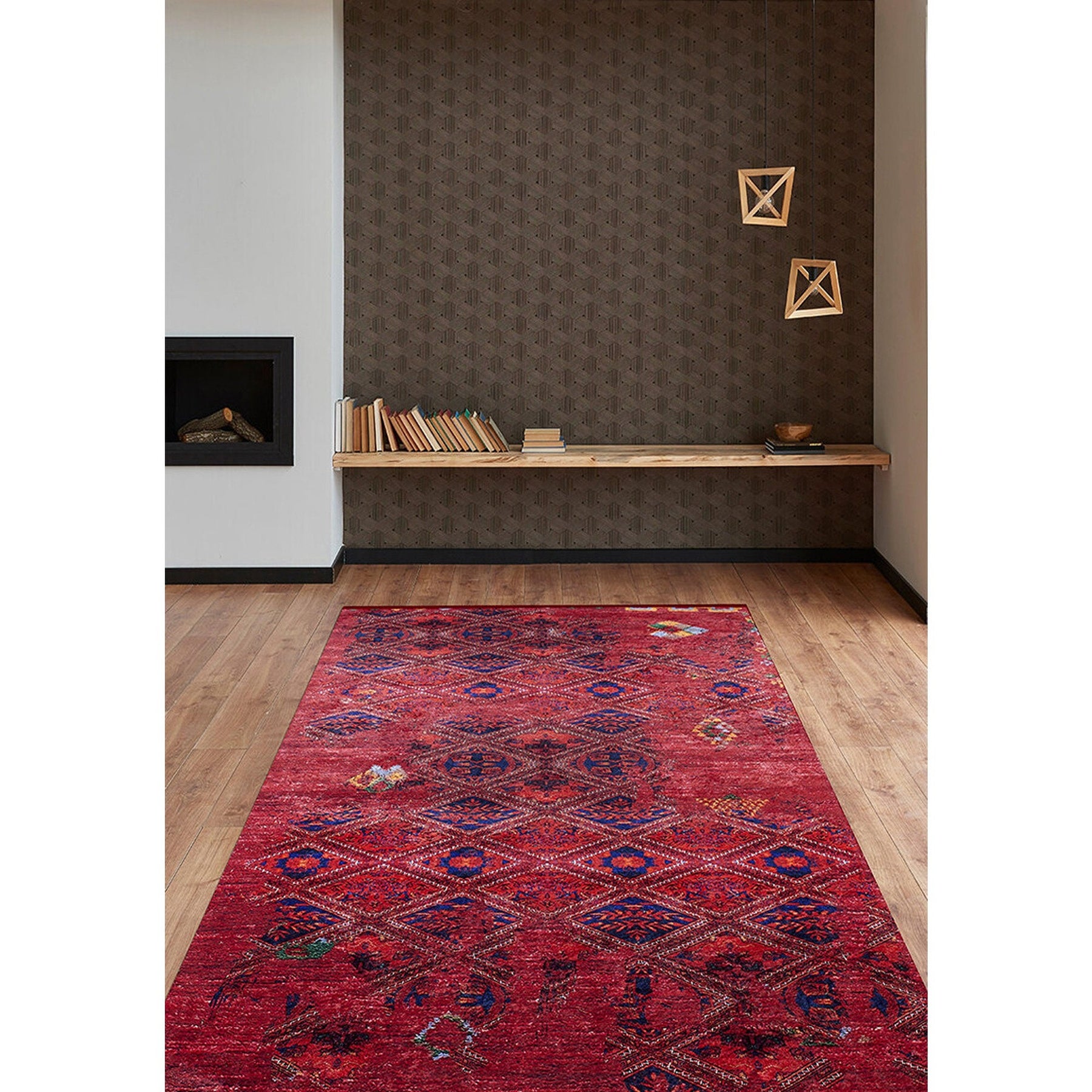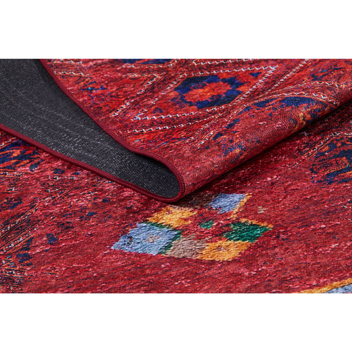 This elegant Machine-Washable floor rug with Ethnic Red Pattern;