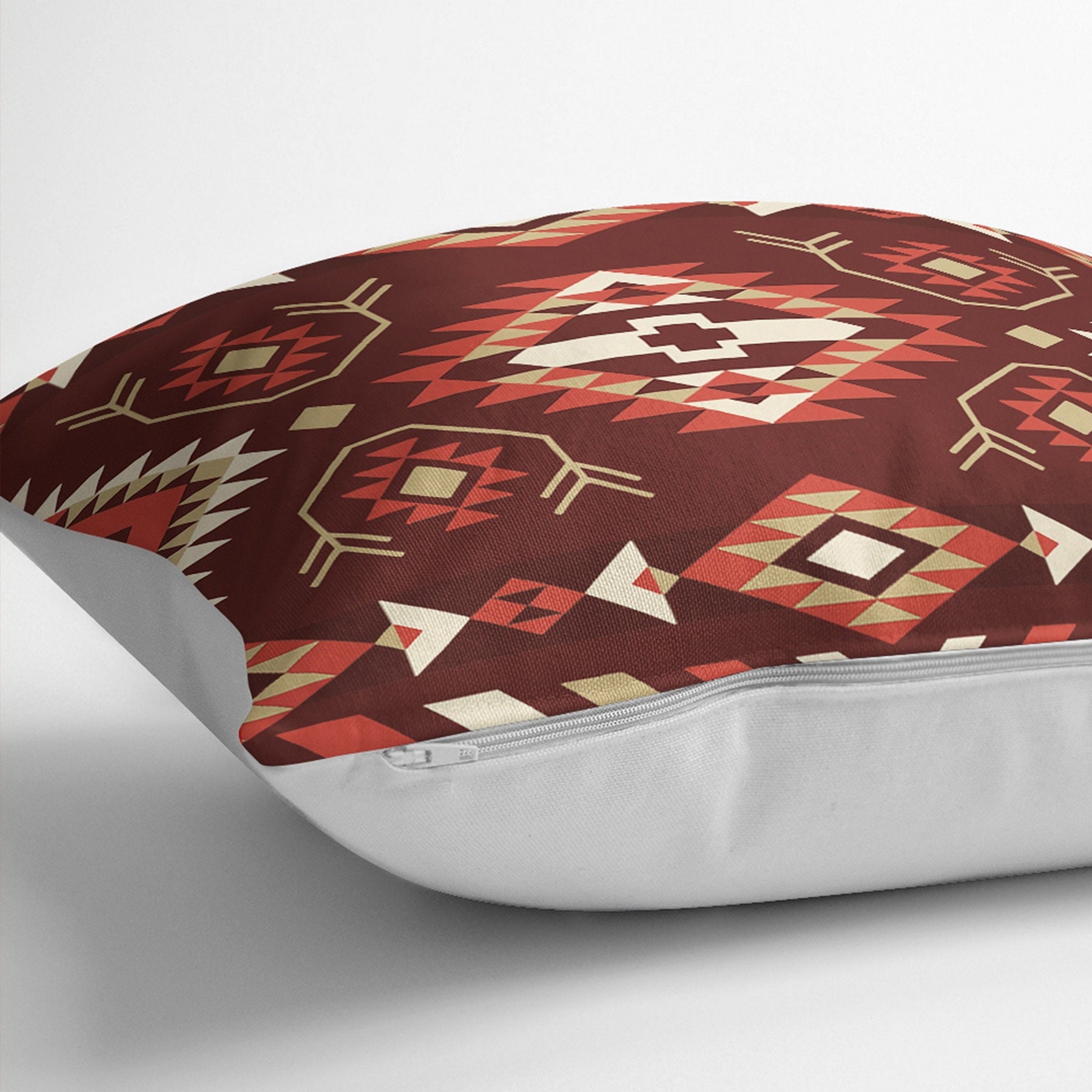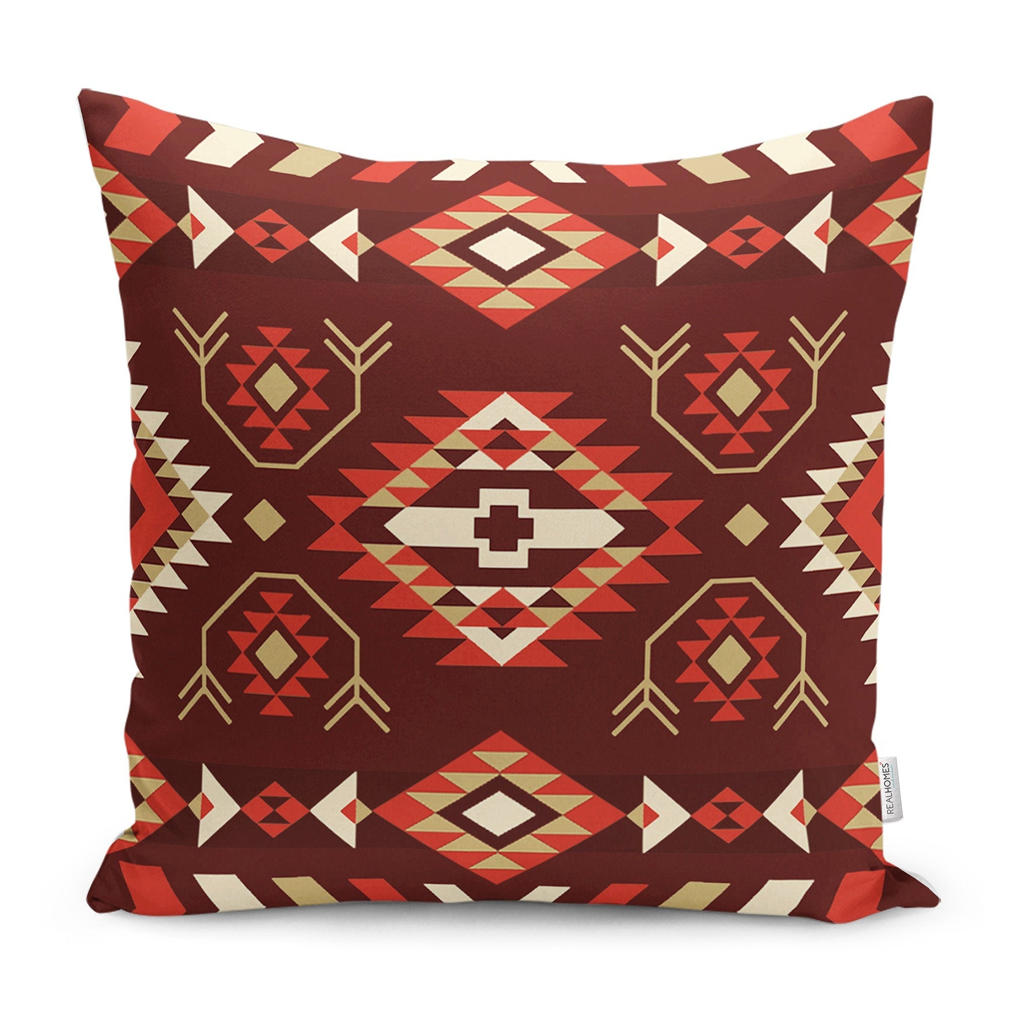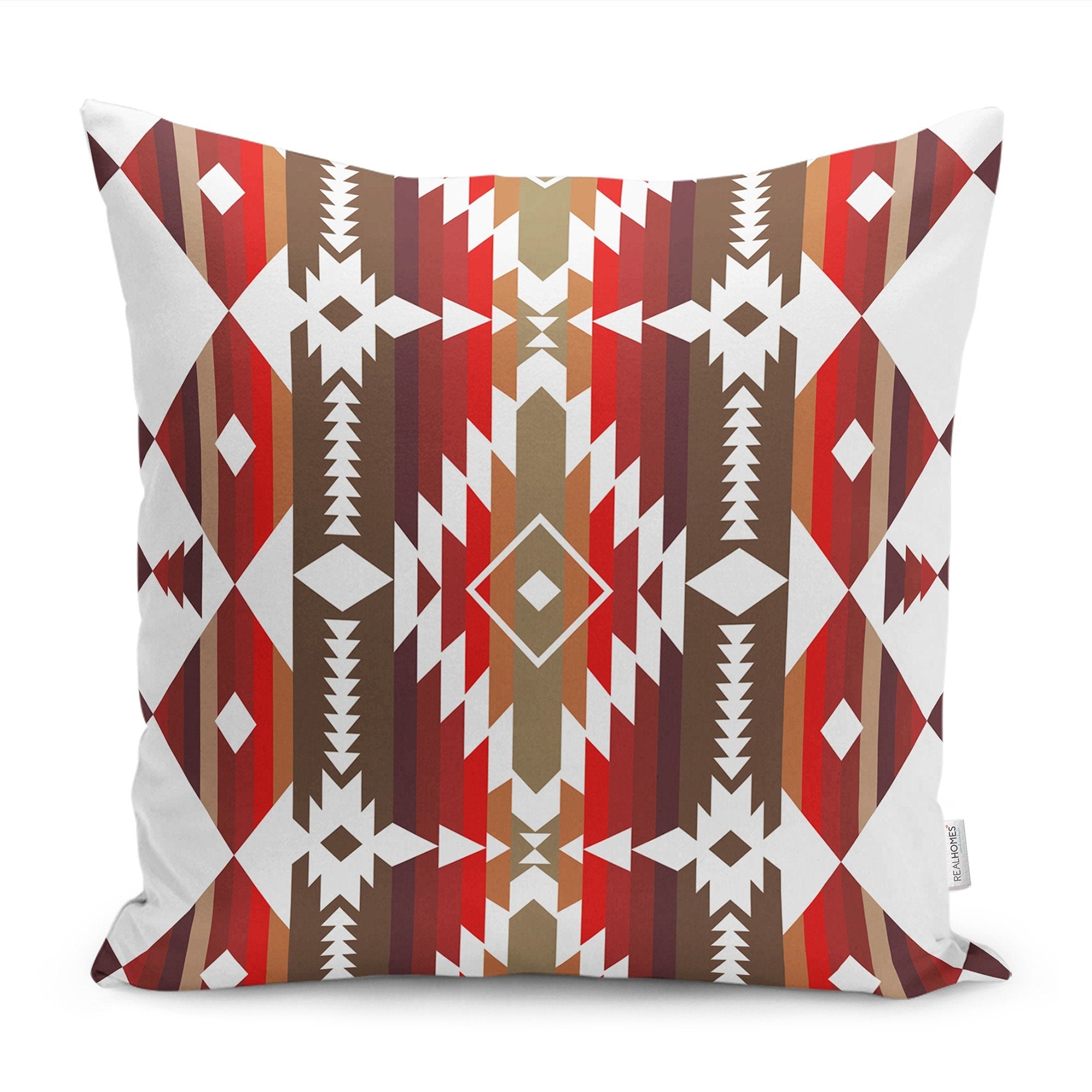 Rug Design Pillow Cover|Decorative Geometric Pillowtop|Terracotta Southwestern Cushion Case|Aztec Home Decor|Ethnic Farmhouse Cushion Cover