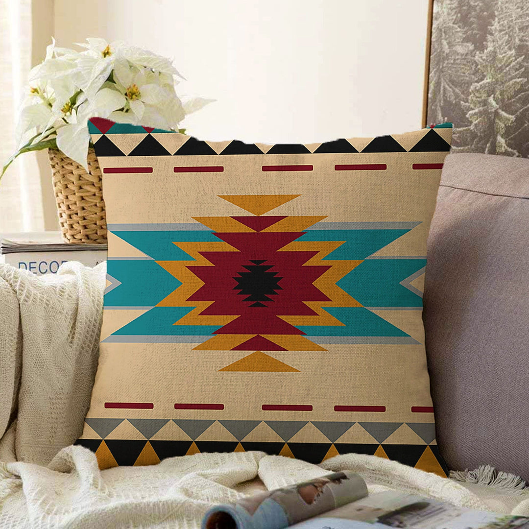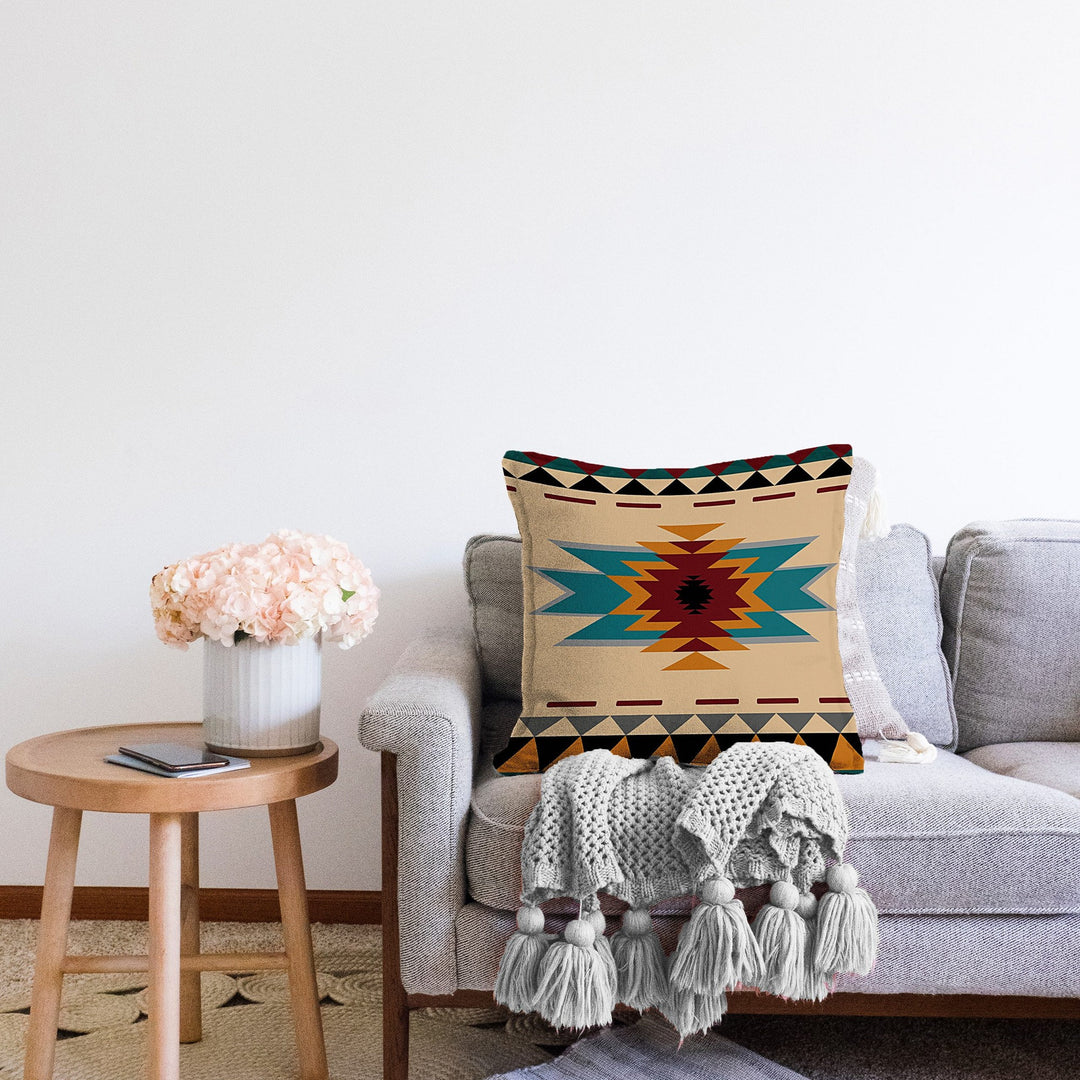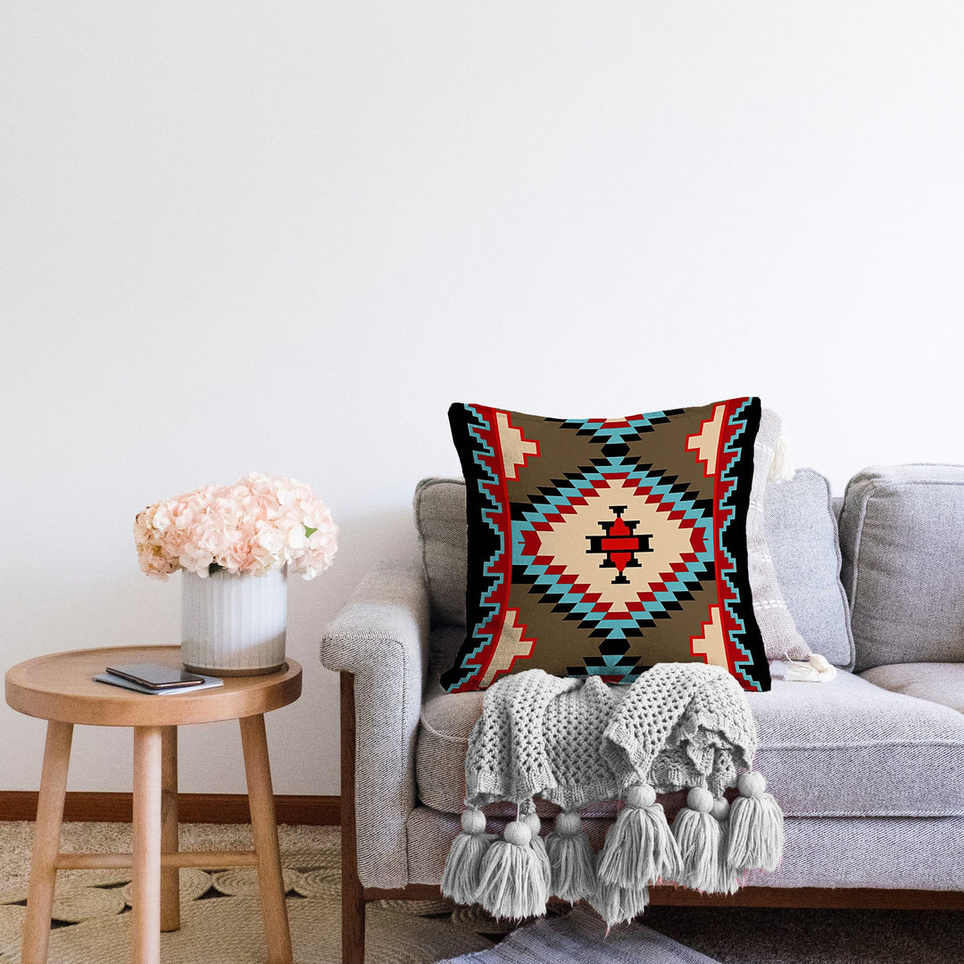 These elegant square decorative pillow covers with rug, ethnic, authentic, geometric, aztec design;