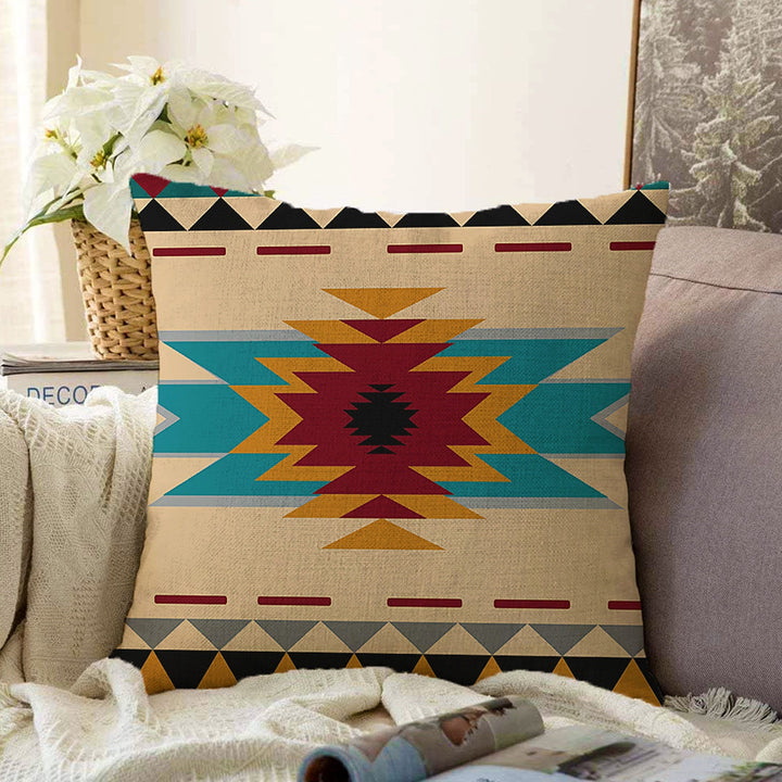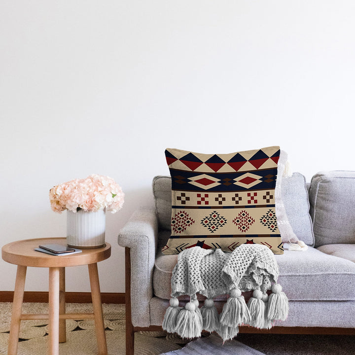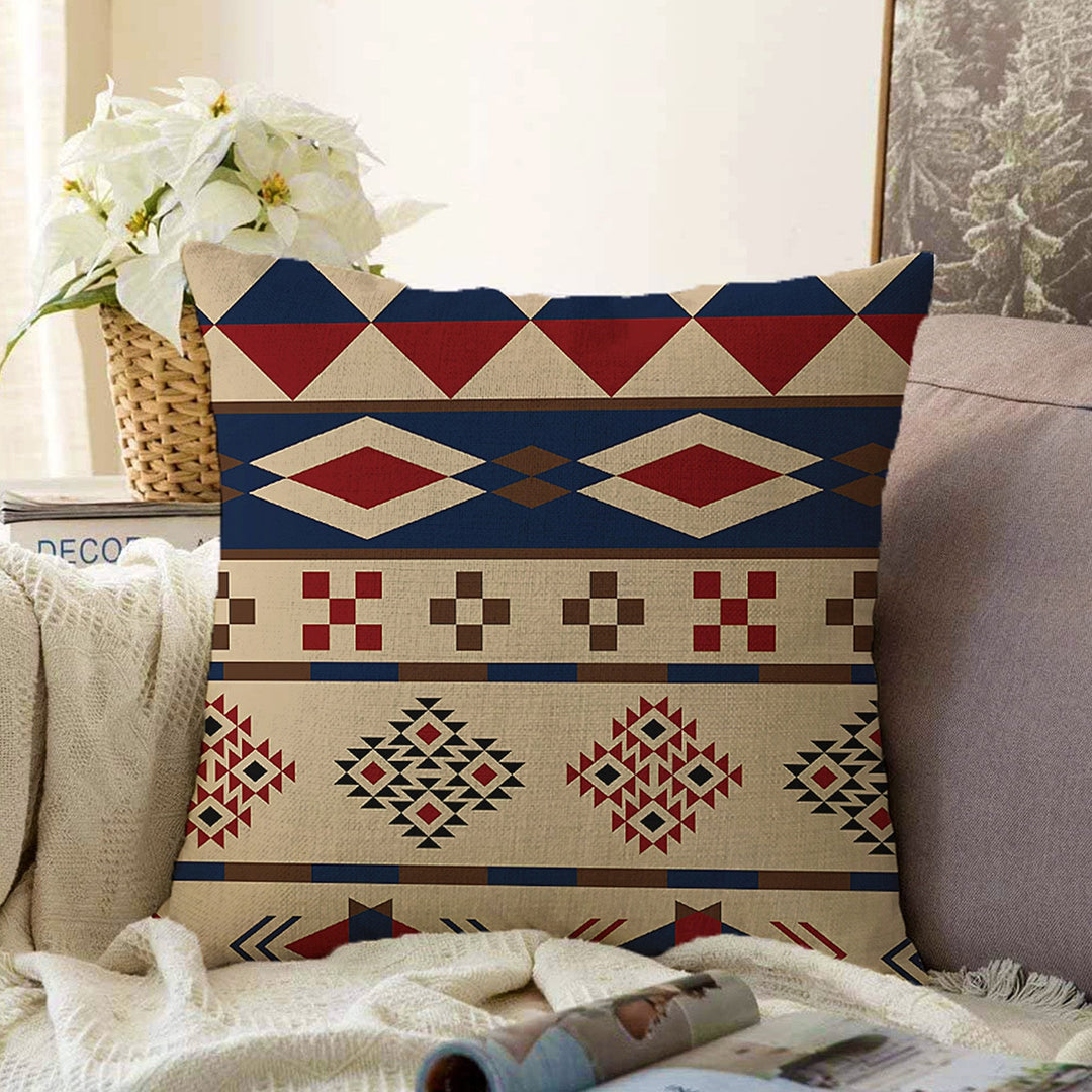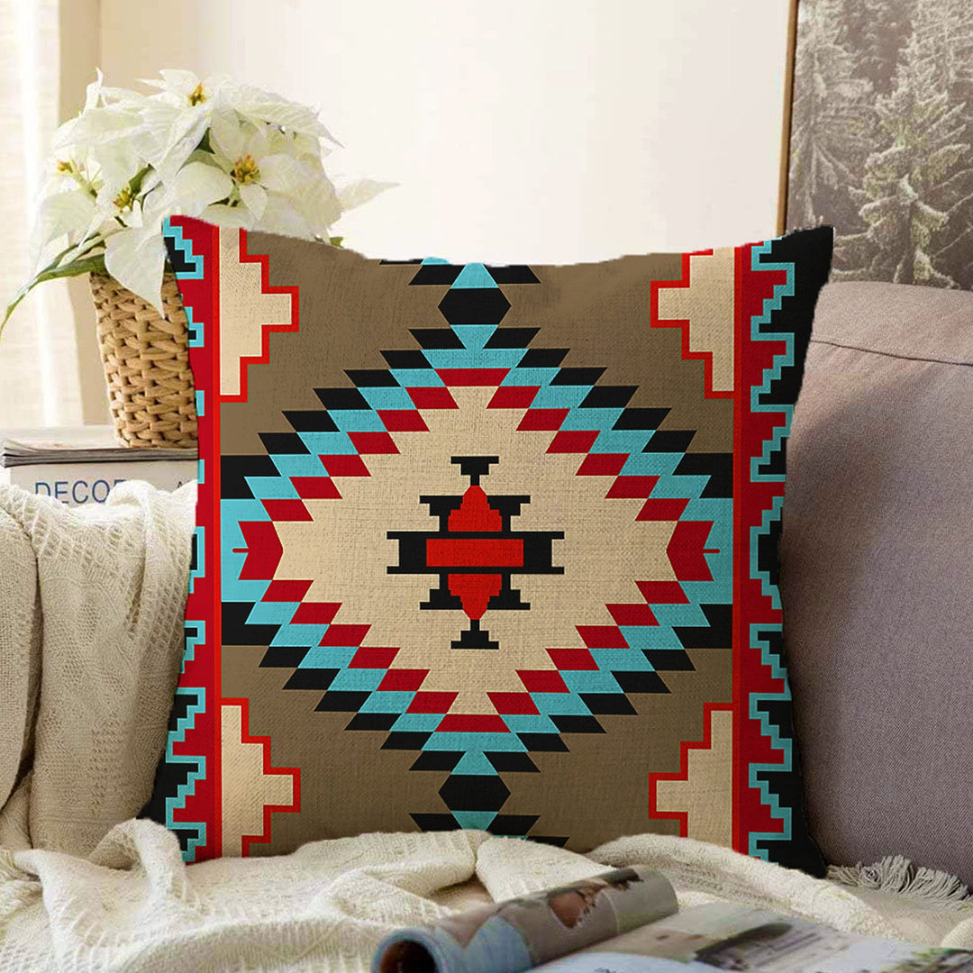 These elegant square decorative pillow covers with rug, ethnic, authentic, geometric, aztec design;