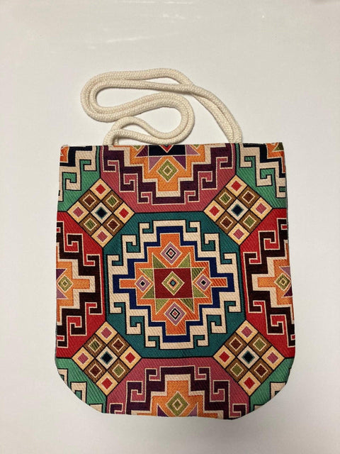 This elegant Turkish kilim/rug design aztec ethnic tapestry bag;