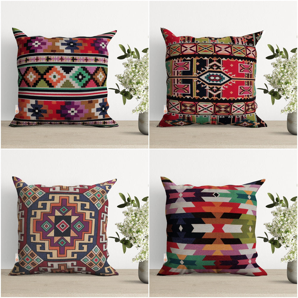 These elegant handmade square Aztec print ethnic authentic throw pillow covers;