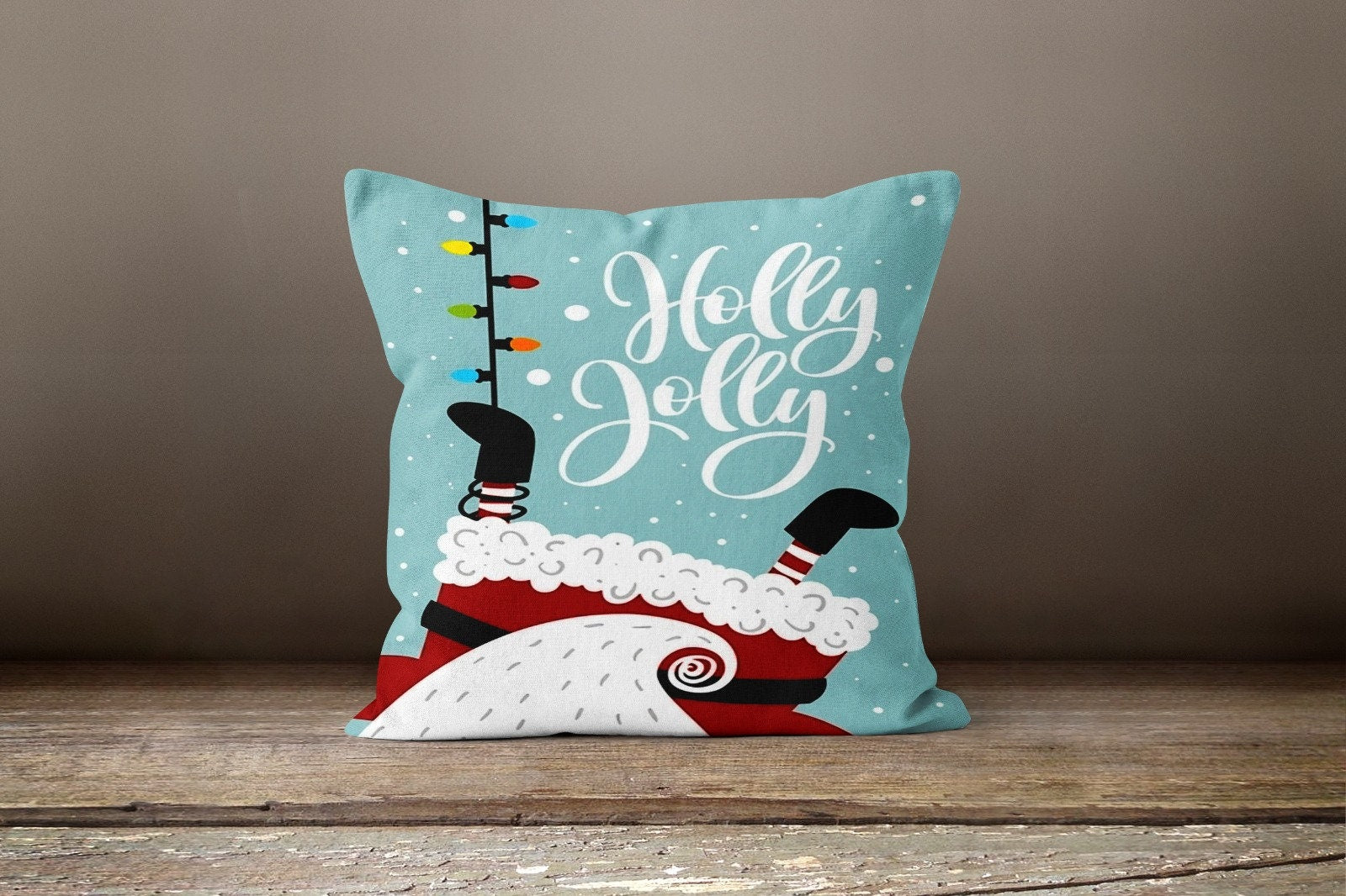 These elegant square decorative rustic farmhouse throw cushion covers with Santa Claus, Ho Ho and Holly Jolly prints;