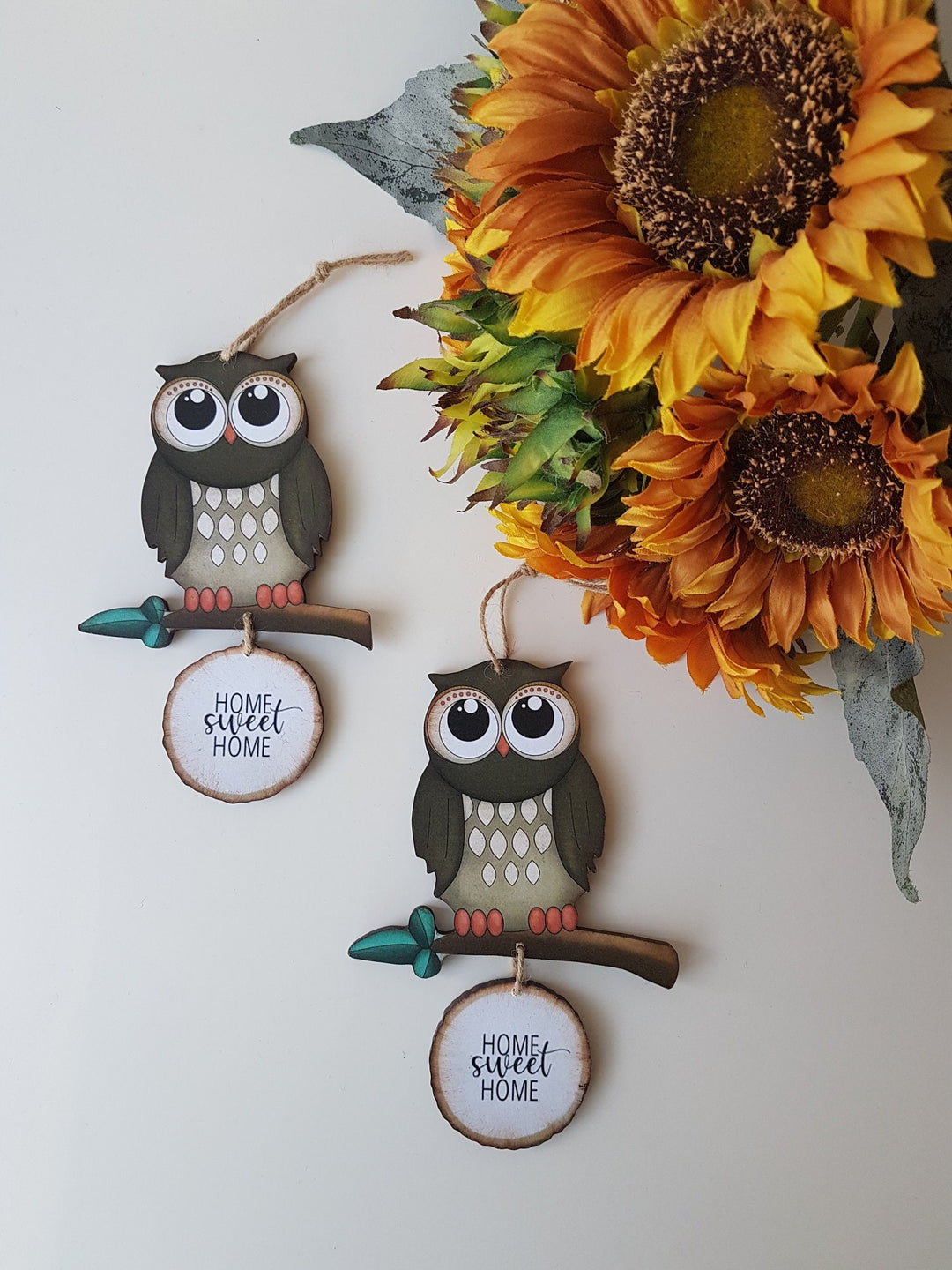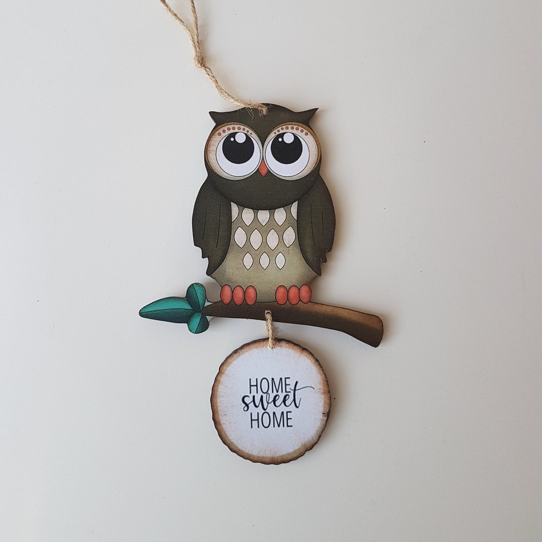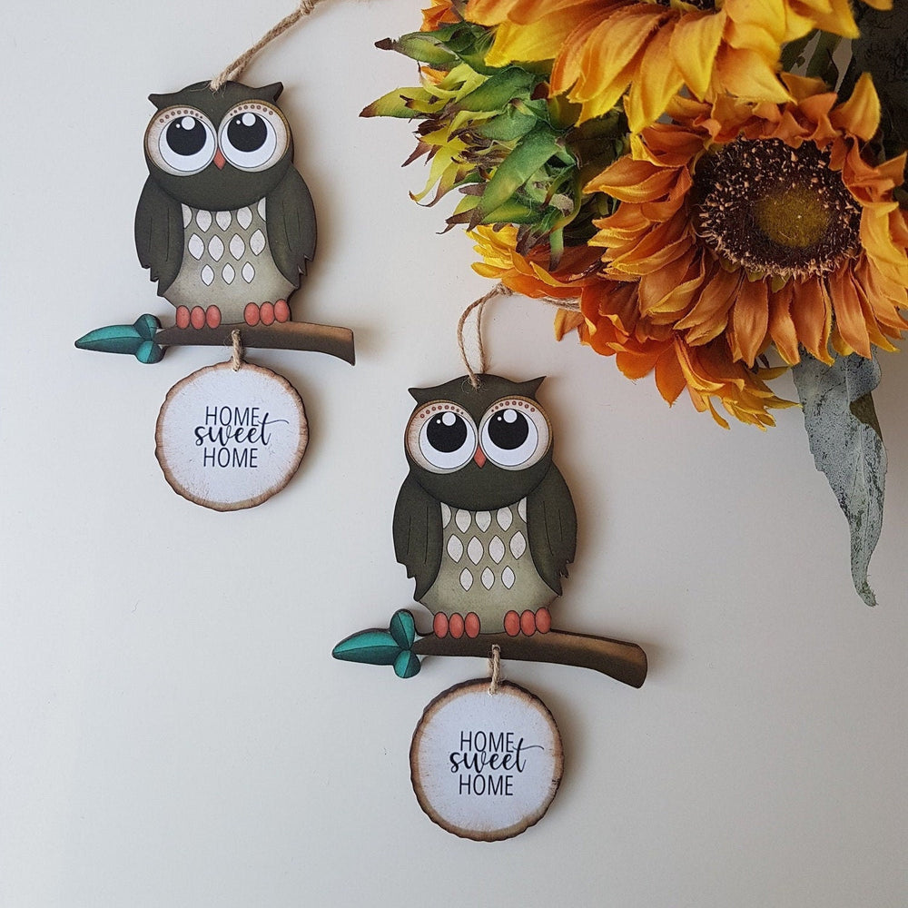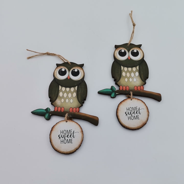 Imagine this charming UV-printed "Set of 2 Owl Home Sweet Home Sign " on your door or wall welcome your family and friends!