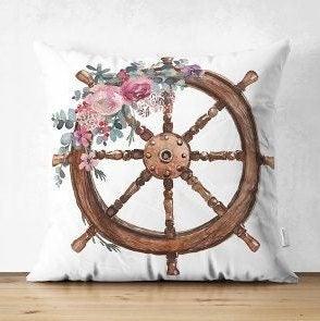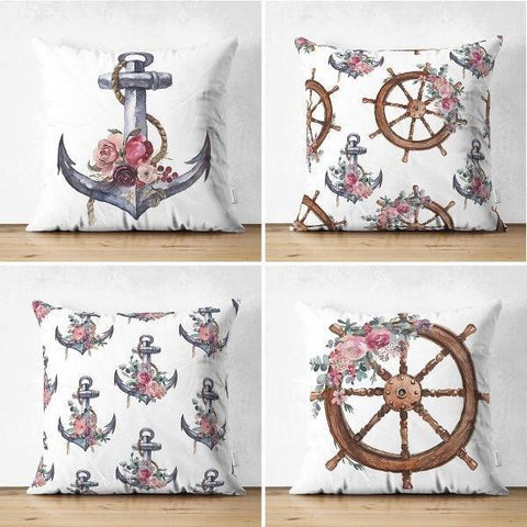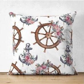 These elegant stylish and high quality suede square pillow covers (including 4 pillow covers) with Floral Navy Anchor and Wheel;