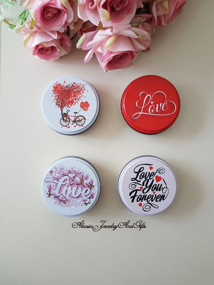 Set of 4 Valentine's Day Gift Box|Love Metal Gift Box|Mini Jewelry Storage|Chocolate Soap Cookie Bead Tin Grab Box|I Love You Birthday Gift