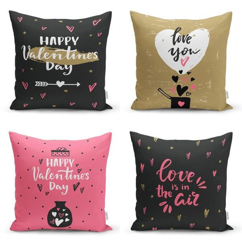 These elegant stylish and high quality square pillow covers (including 4 pillow covers) with Love Heart, Love Arrow, Love is in The Air, Happy Valentine's Day, Love You prints;