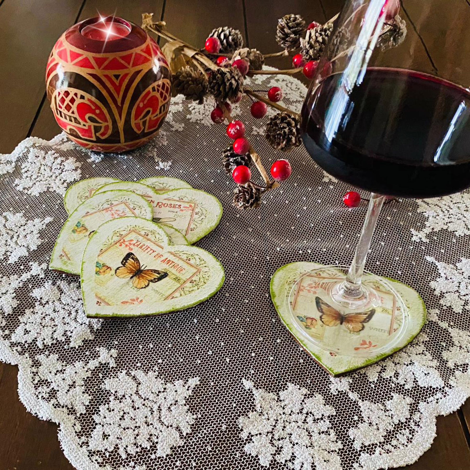 Imagine these handmade "Set of 6 Love Coaster Set" on your table as a romantic home decor to welcome your family and friends. Also; unique new home gift for women.