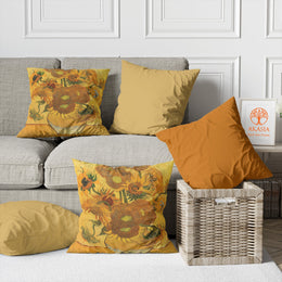 These elegant square decorative farmhouse summer trend throw pillow covers with Sunflowers by Van Gogh print;