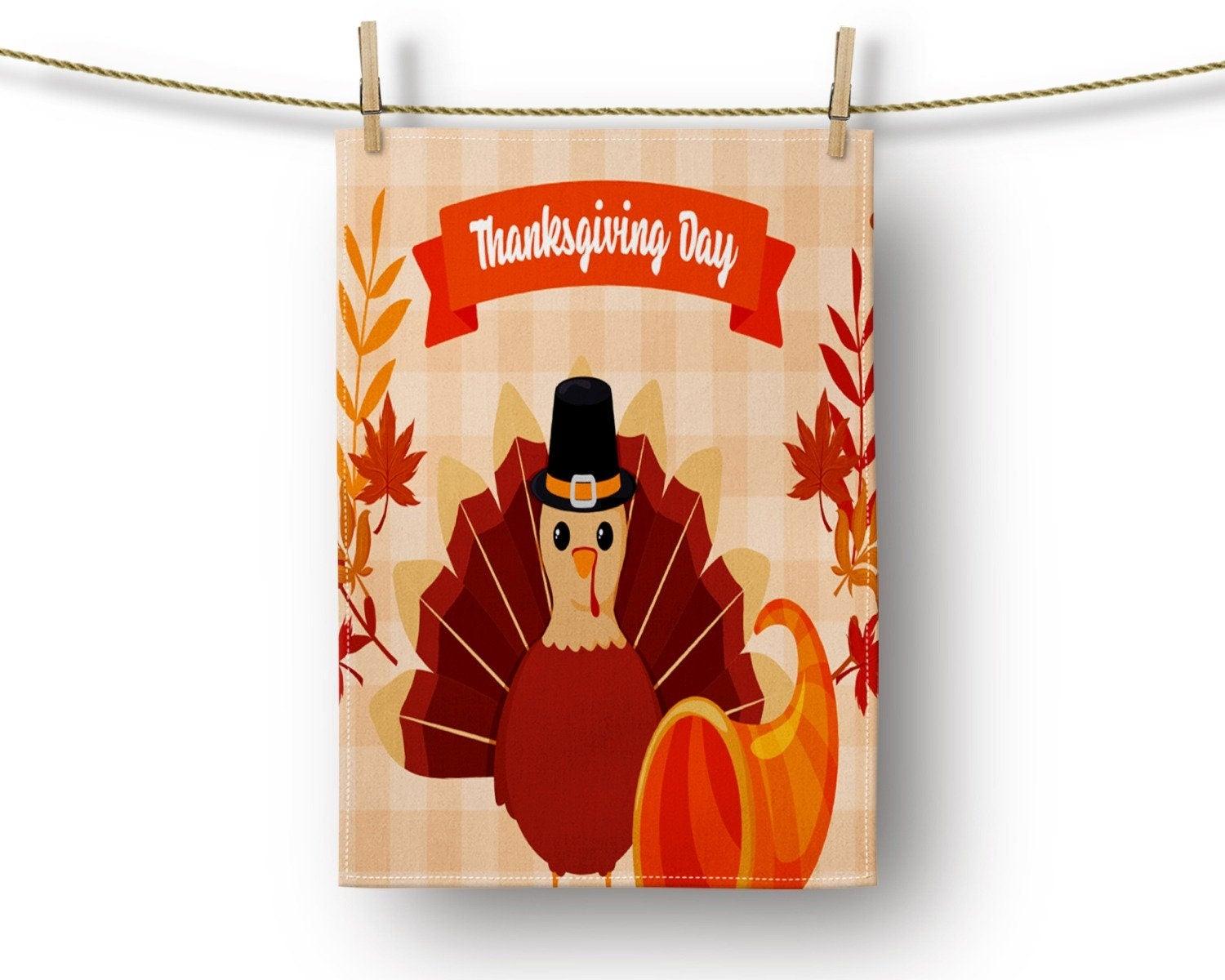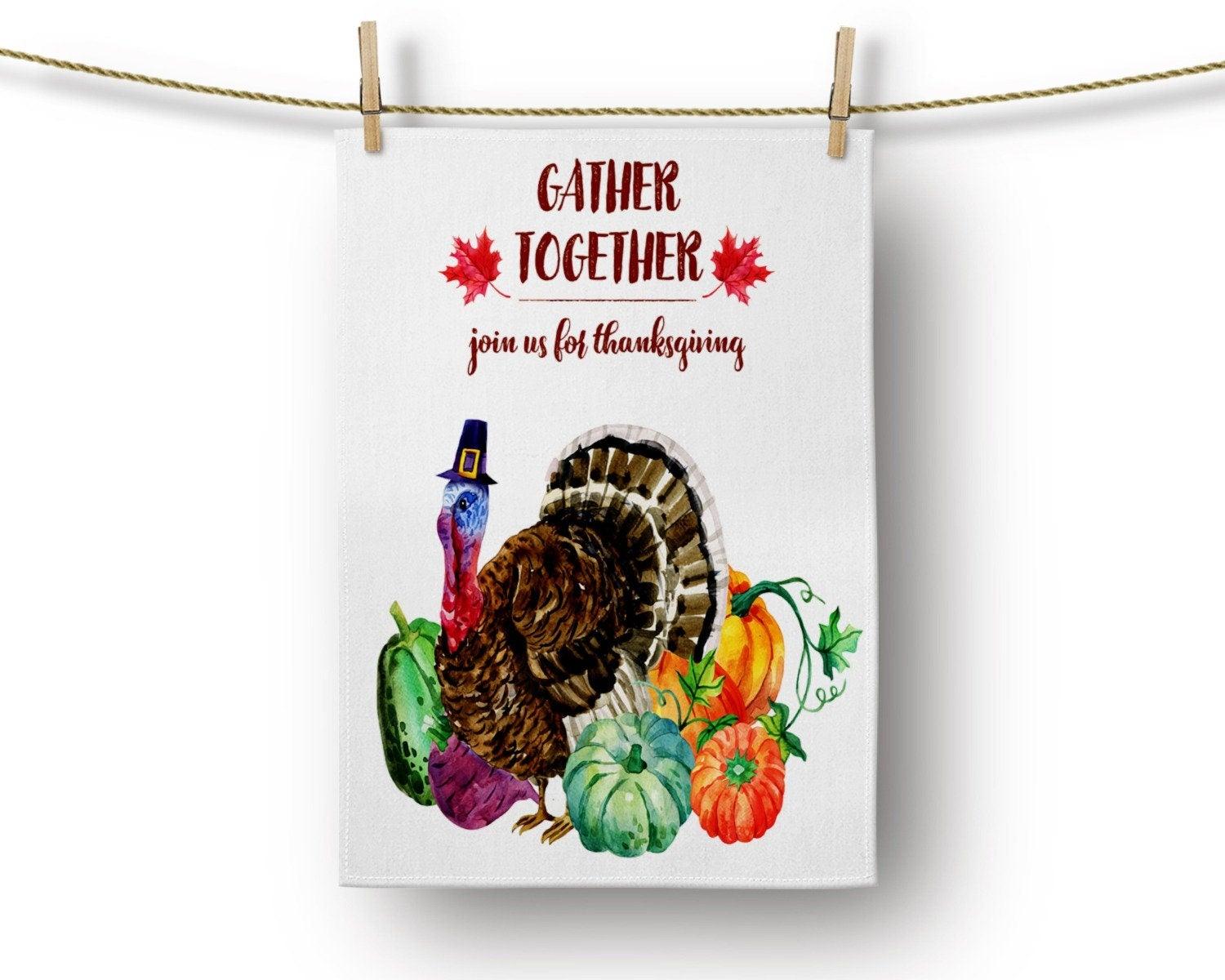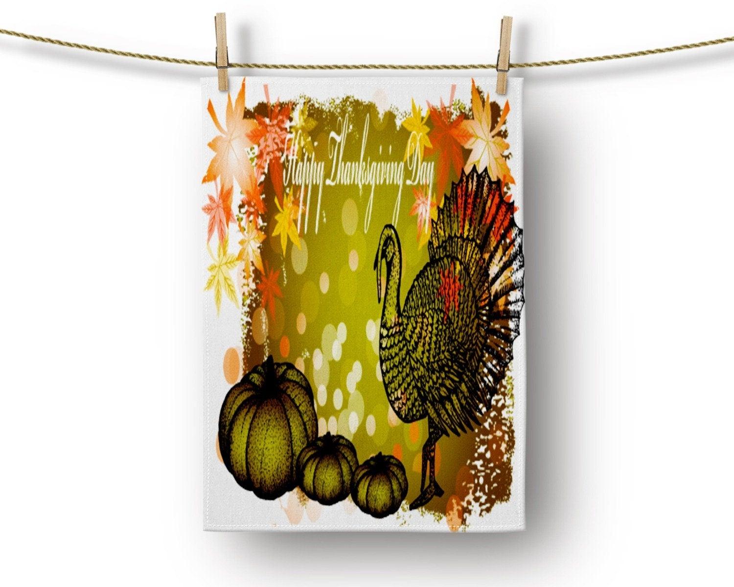 These elegant decorative rectangle kitchen/dish/hand/tea towels with turkey, pumpkin, Happy Thanksgiving Day/Gather Together Join Us for Thanksgiving prints and leaves;