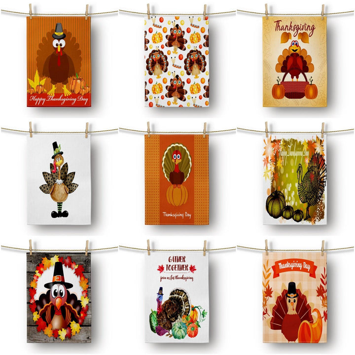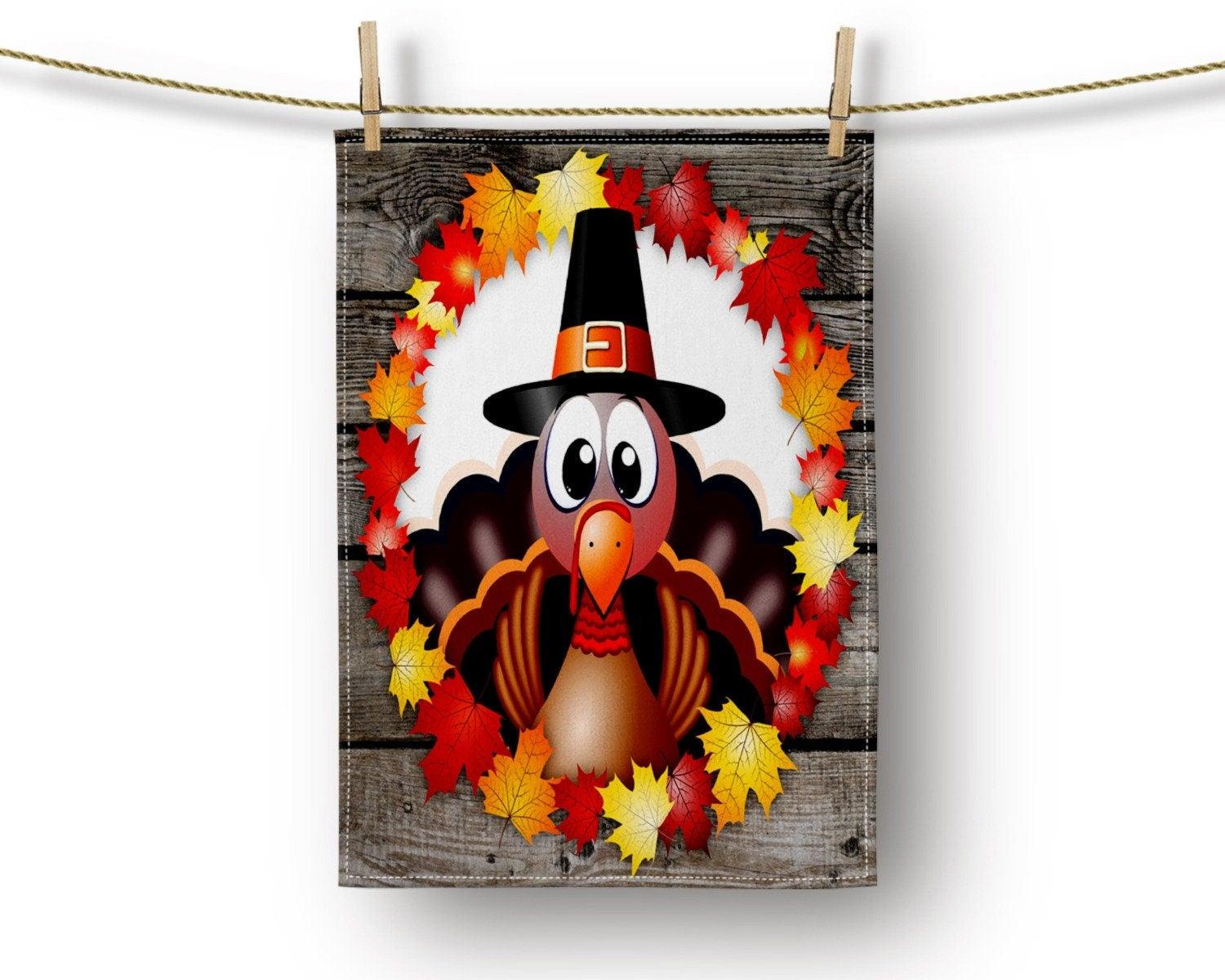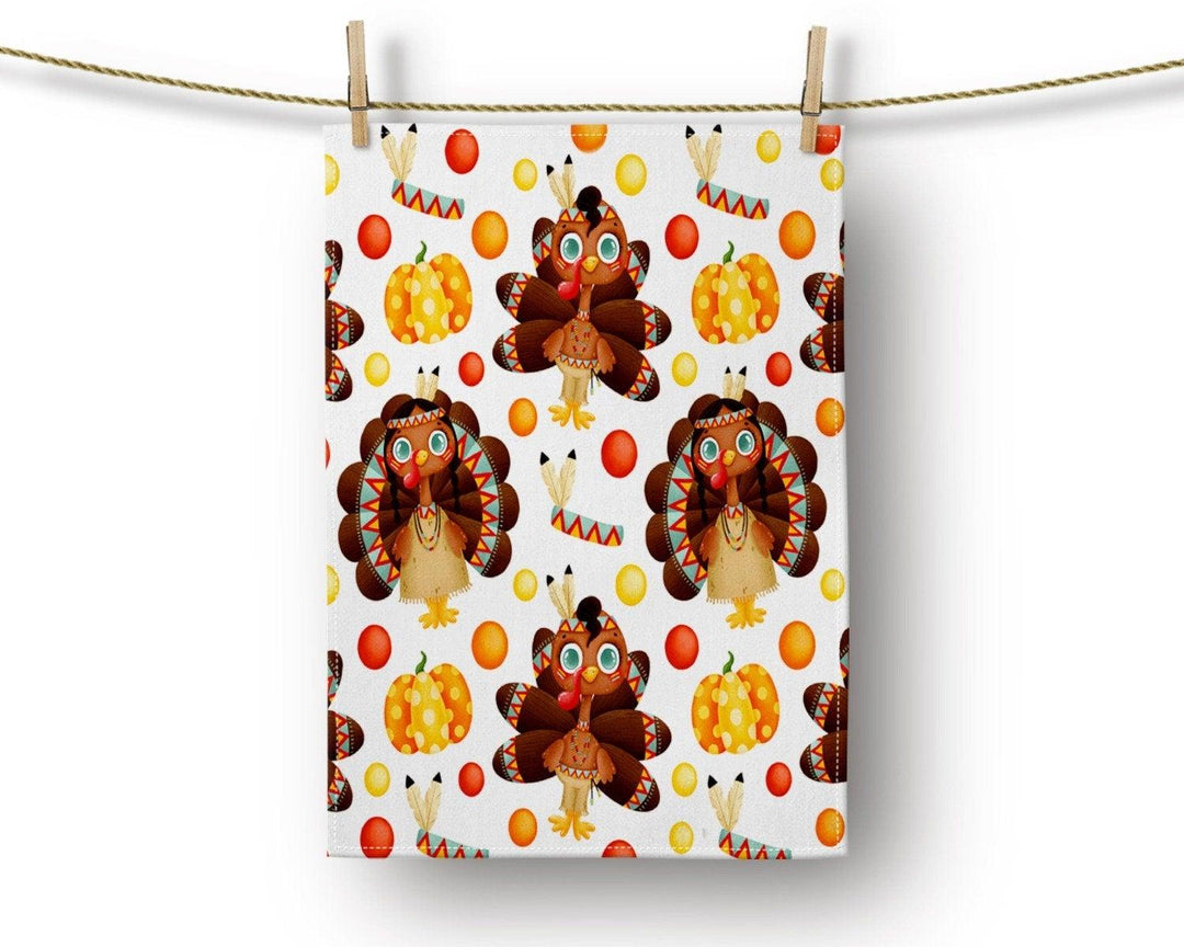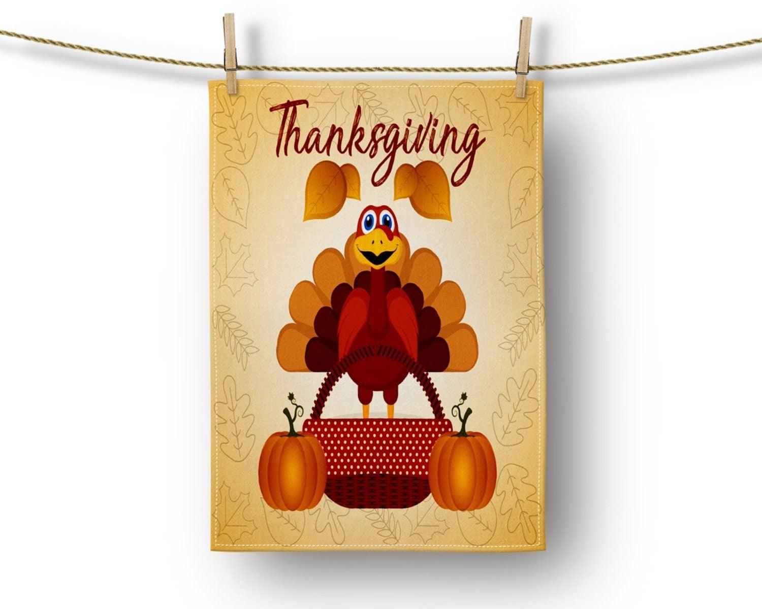 These elegant decorative rectangle kitchen/dish/hand/tea towels with turkey, pumpkin, Happy Thanksgiving Day/Gather Together Join Us for Thanksgiving prints and leaves;