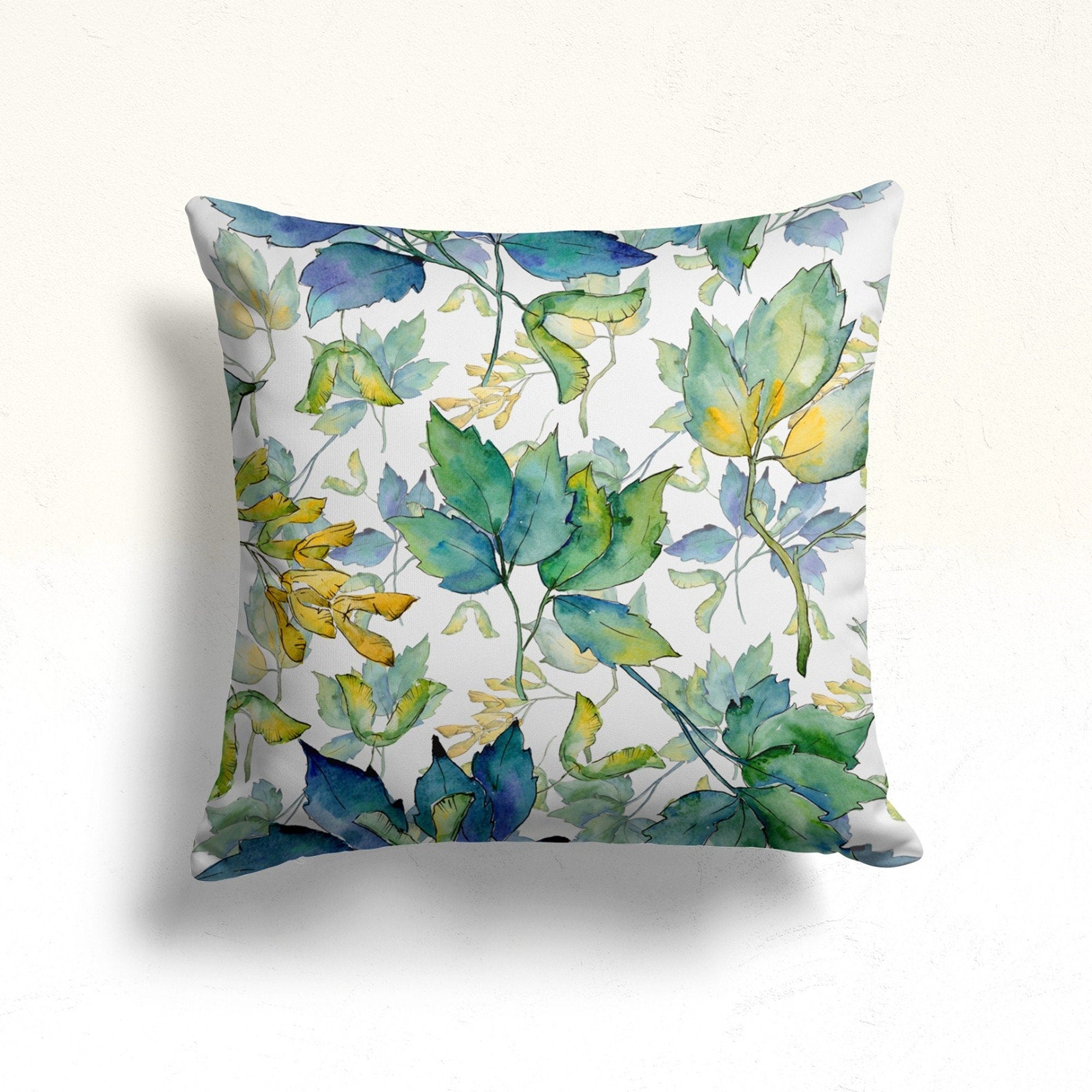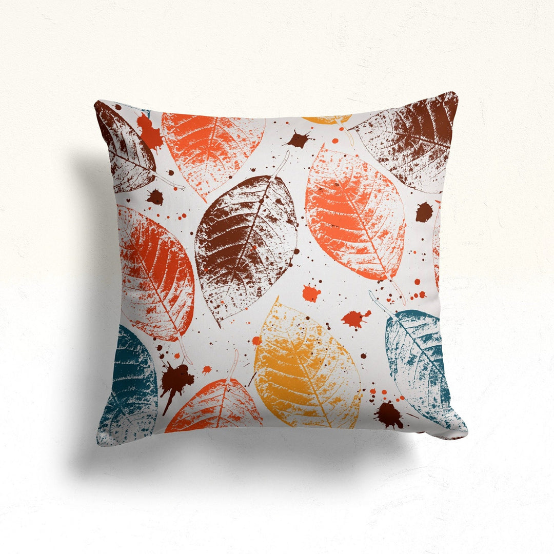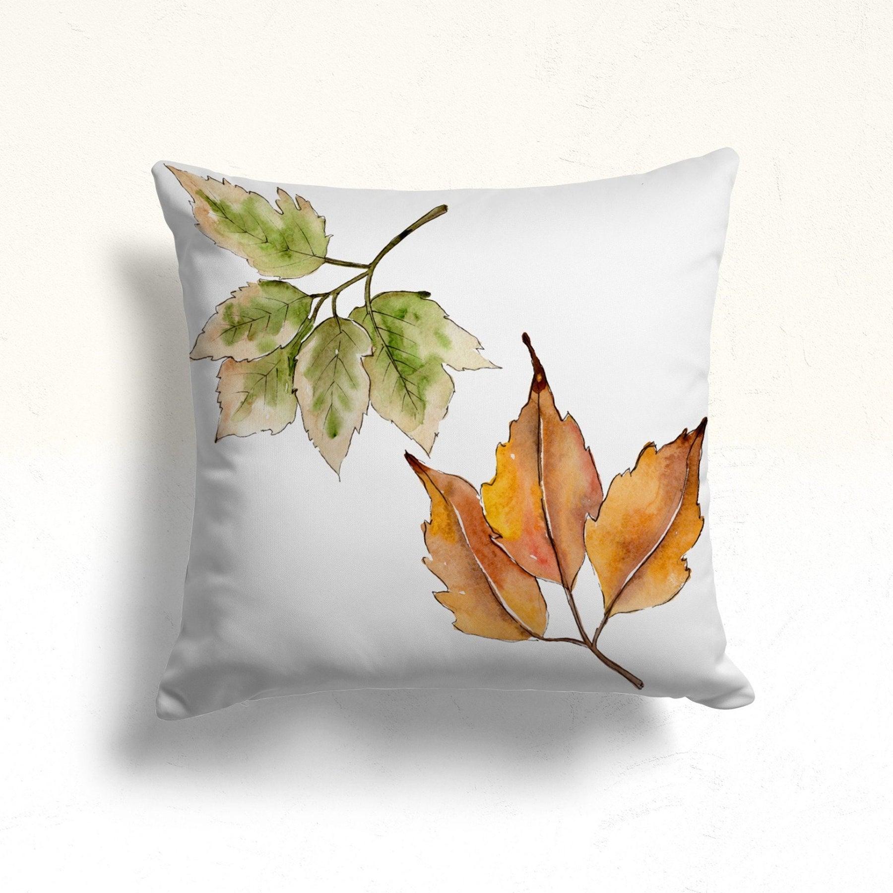 These decorative square fall trend throw pillow covers with Orange Green Yellow Leaf Drawing;