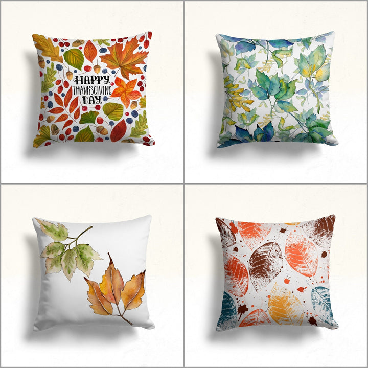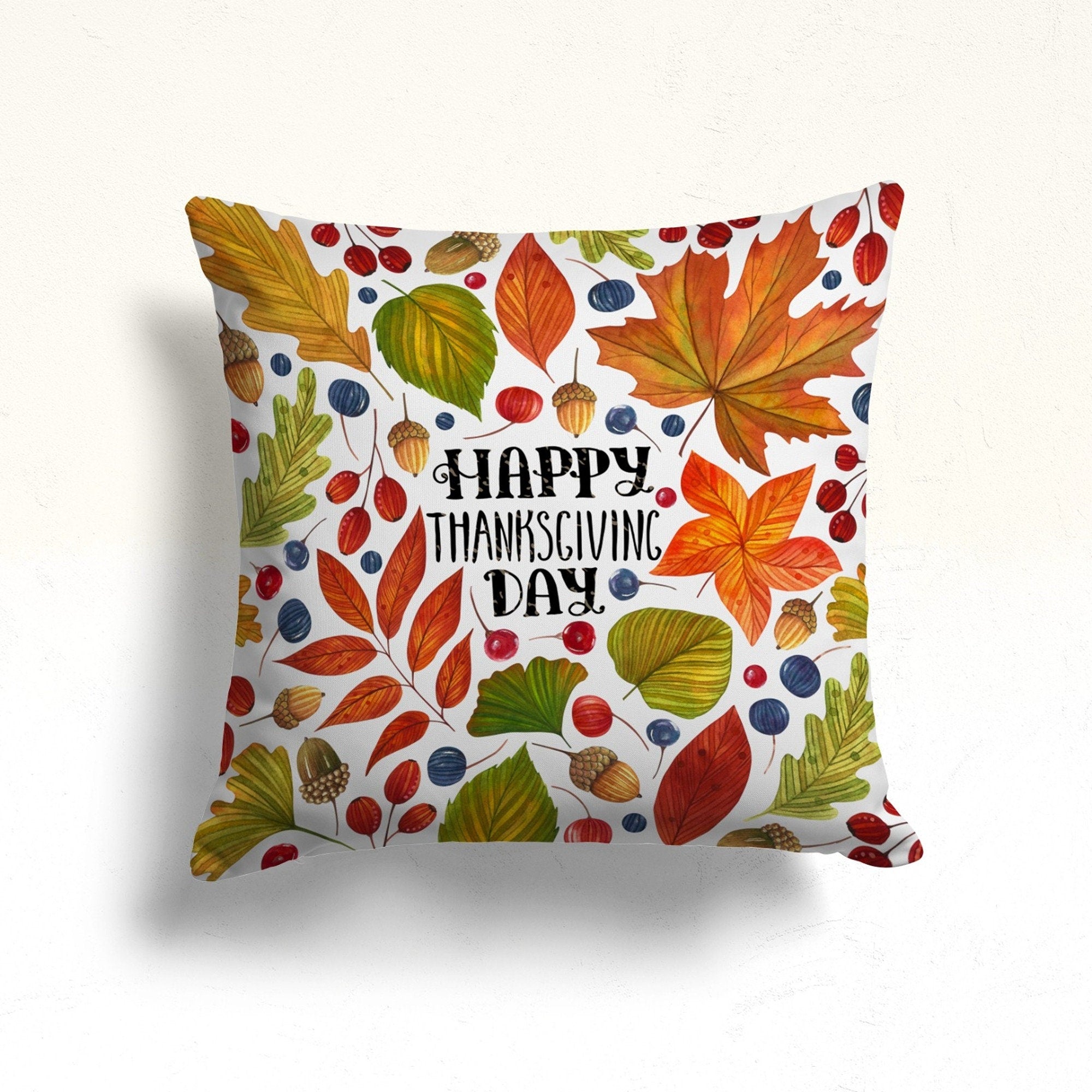 Thanksgiving Pillow Cover with Orange Green Leaf Drawing