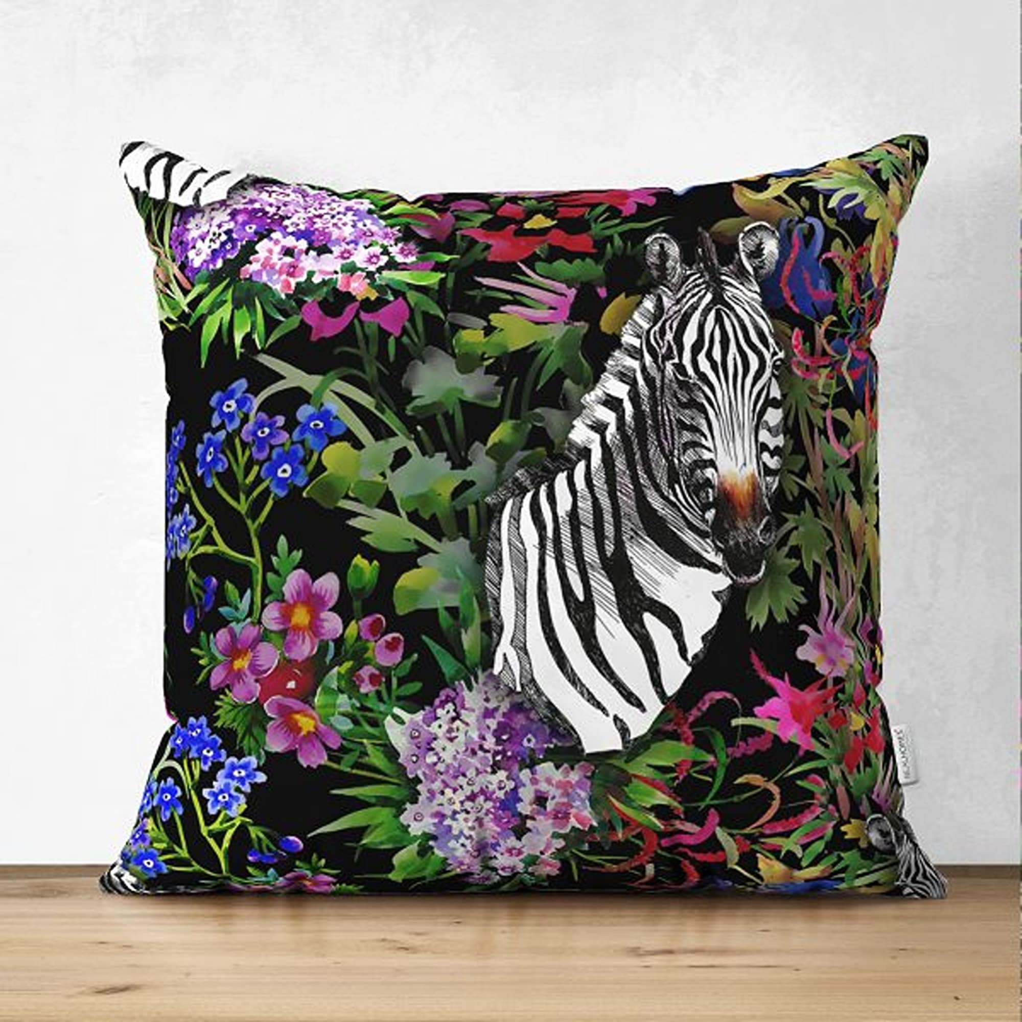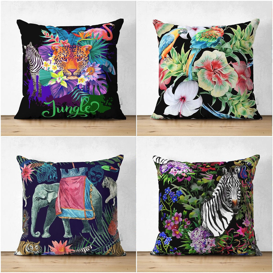 These elegant stylish and high quality suede square pillow covers with colorful jungle and wild animals;