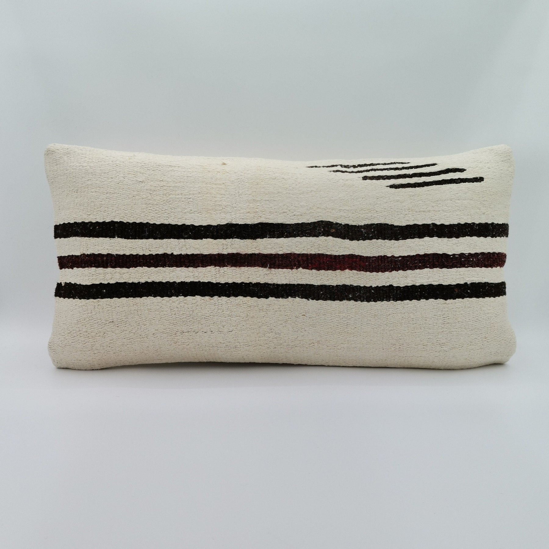 This handmade elegant rectangle Turkish kilim lumbar pillow cover;