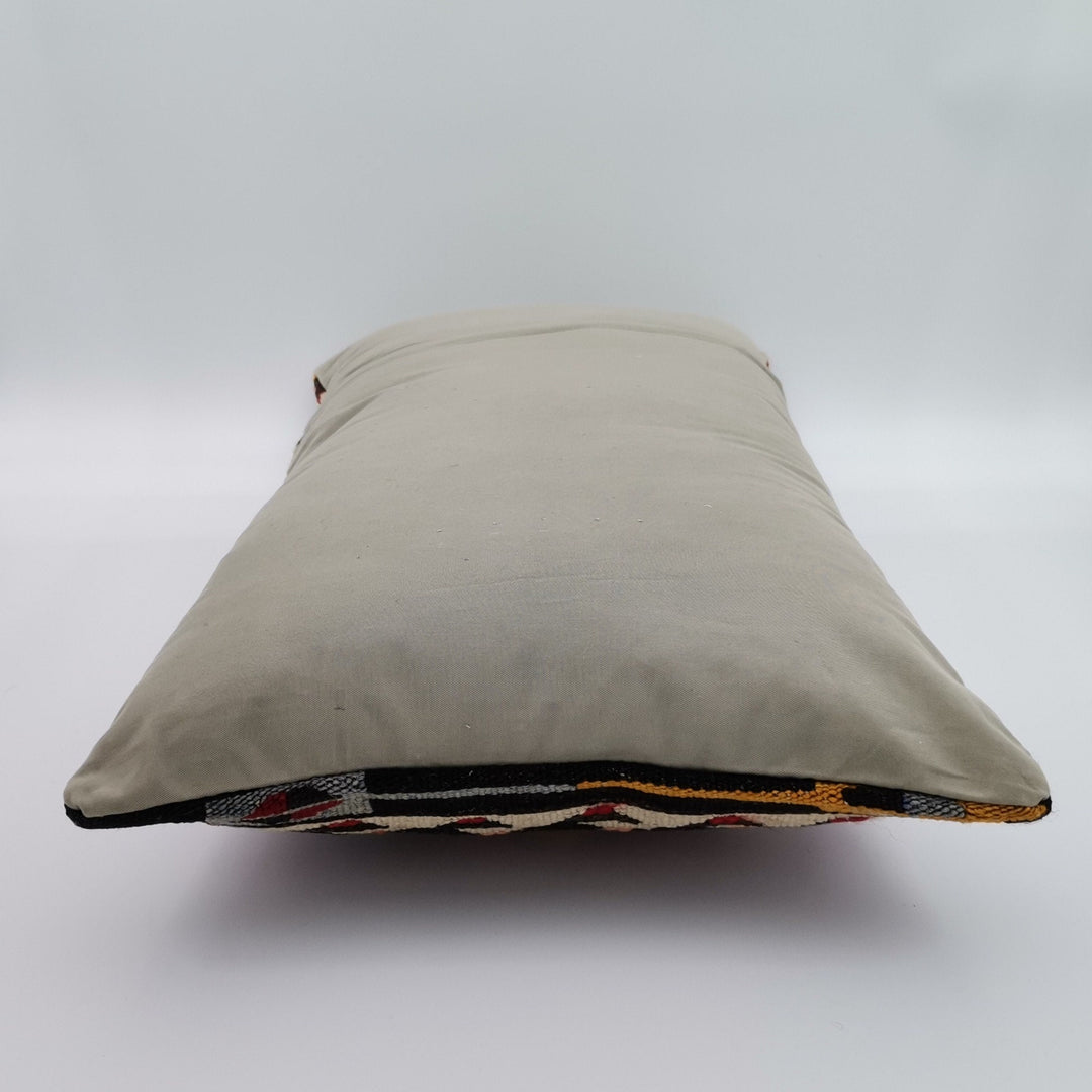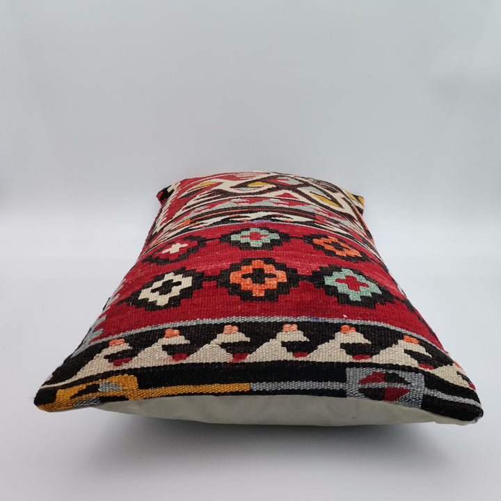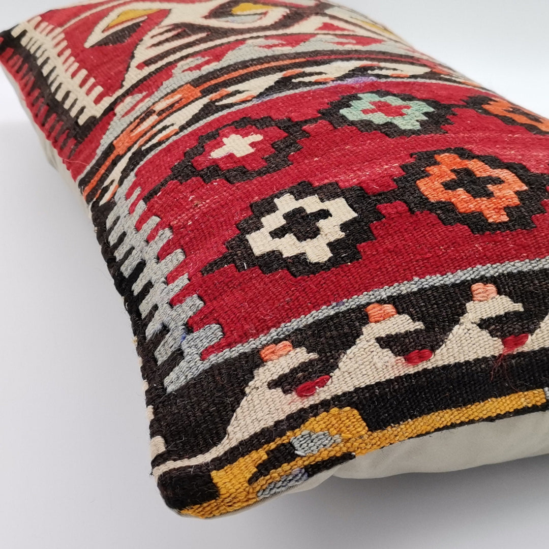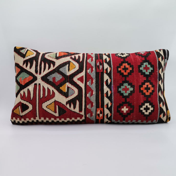 Turkish Kilim Pillow Cover|Geometric Patterned Kelim Cushion Case|Ottoman Rug Lumbar Pillow|Handwoven Anatolian Decor|Vintage Cushion 12x24