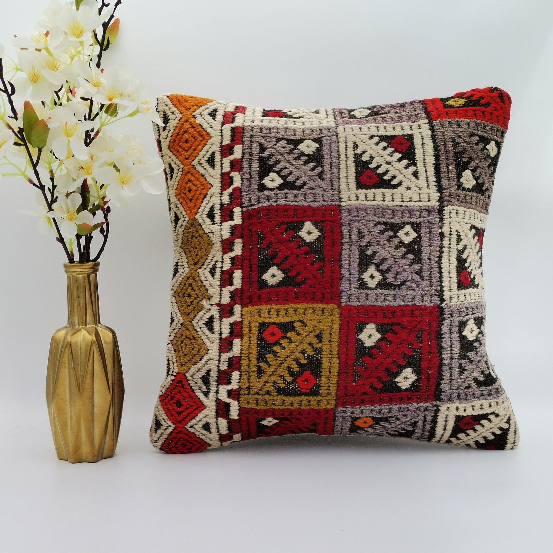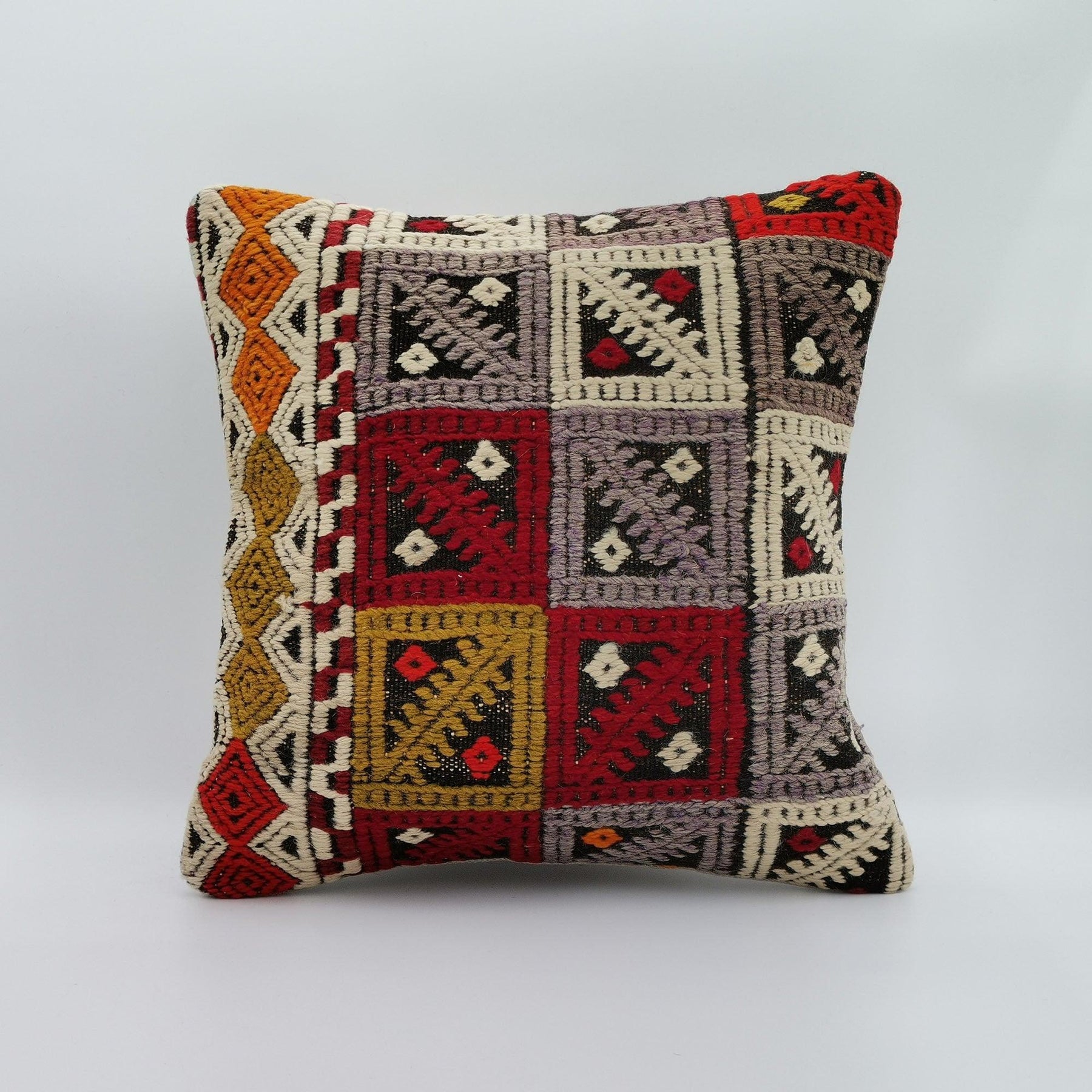 Turkish Kilim Pillow Cover|Vintage Kelim Cushion Case|Eclectic Anatolian Throw Pillow Cover|Boho Bedding Decor|Handwoven Ottoman Rug 16x16