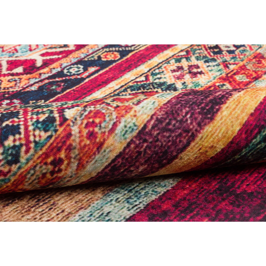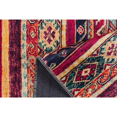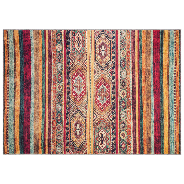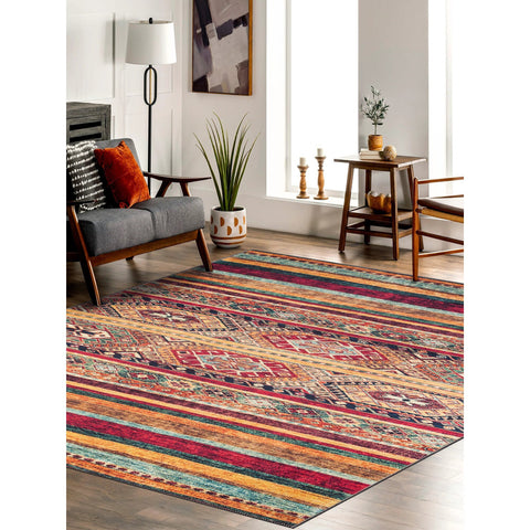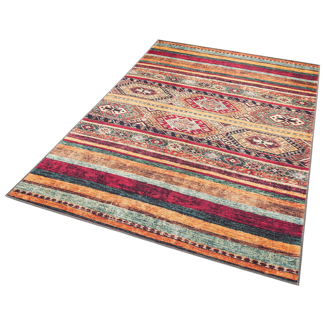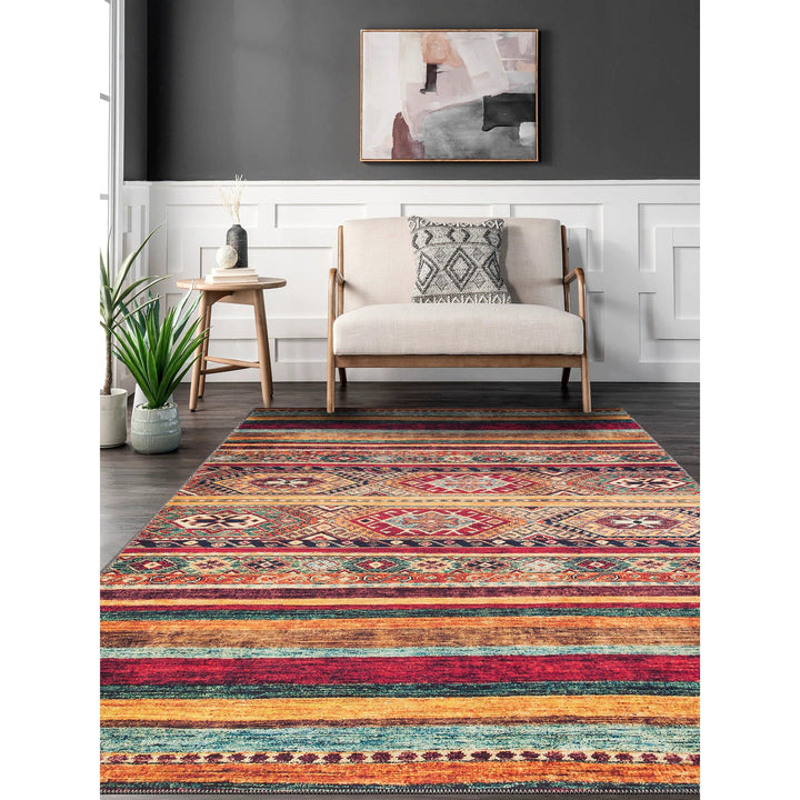 This elegant Machine-Washable floor rug with Ethnic Turkish Kilim design;