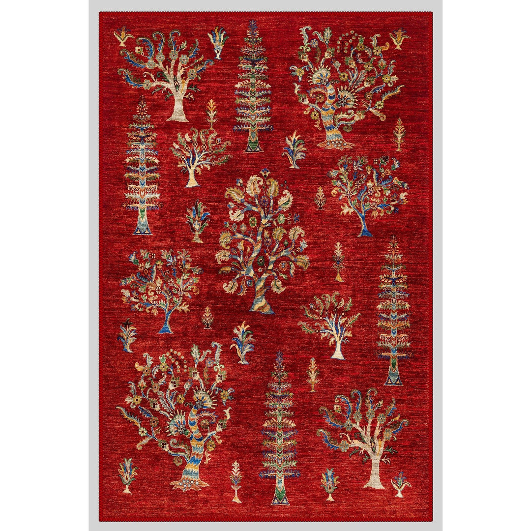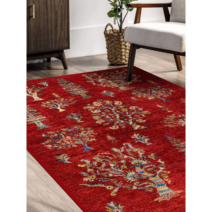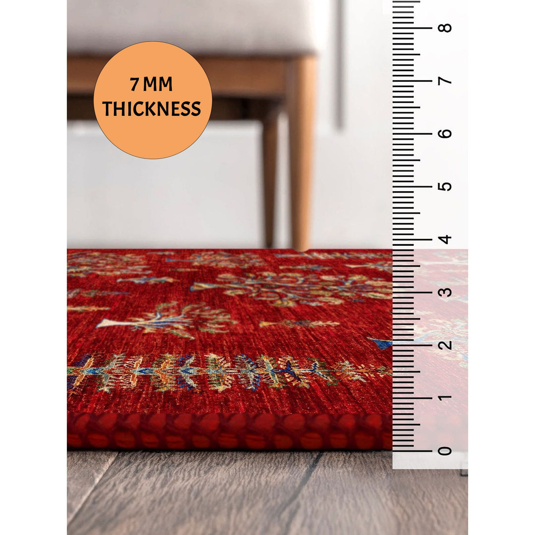 This elegant Machine-Washable floor rug with Ethnic Turkish Kilim design;