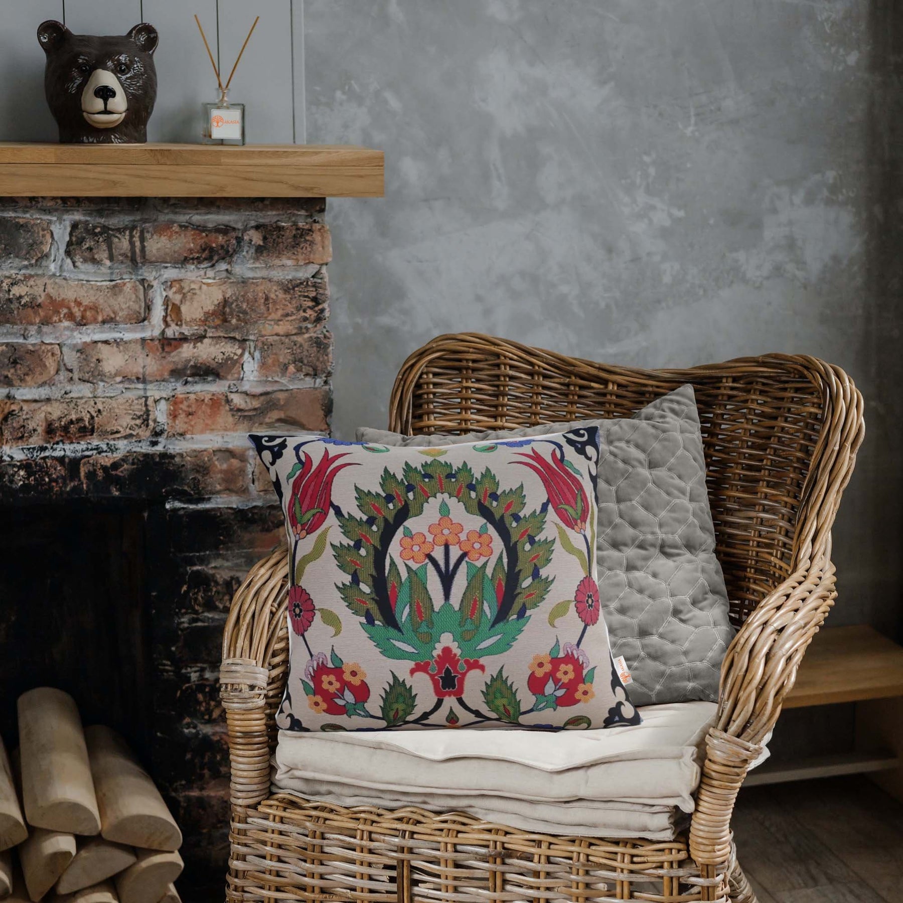 Gobelin Tapestry Pillow Top with Turkish Tulip Tile Pattern