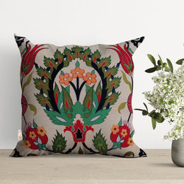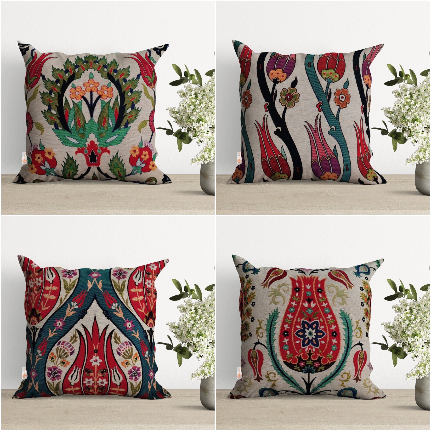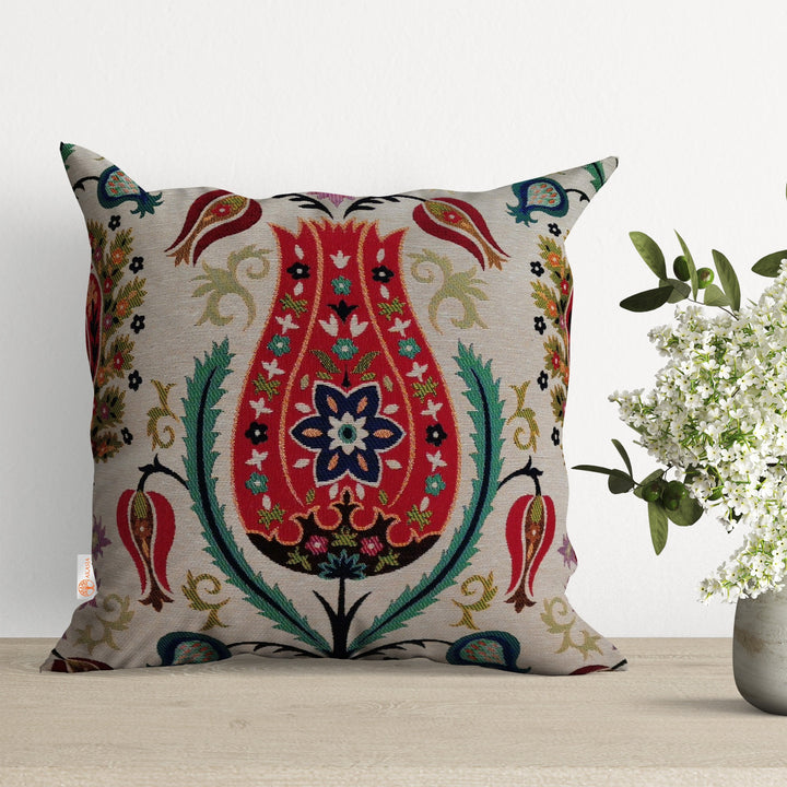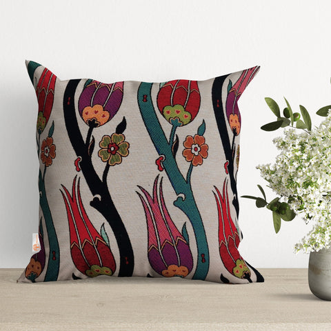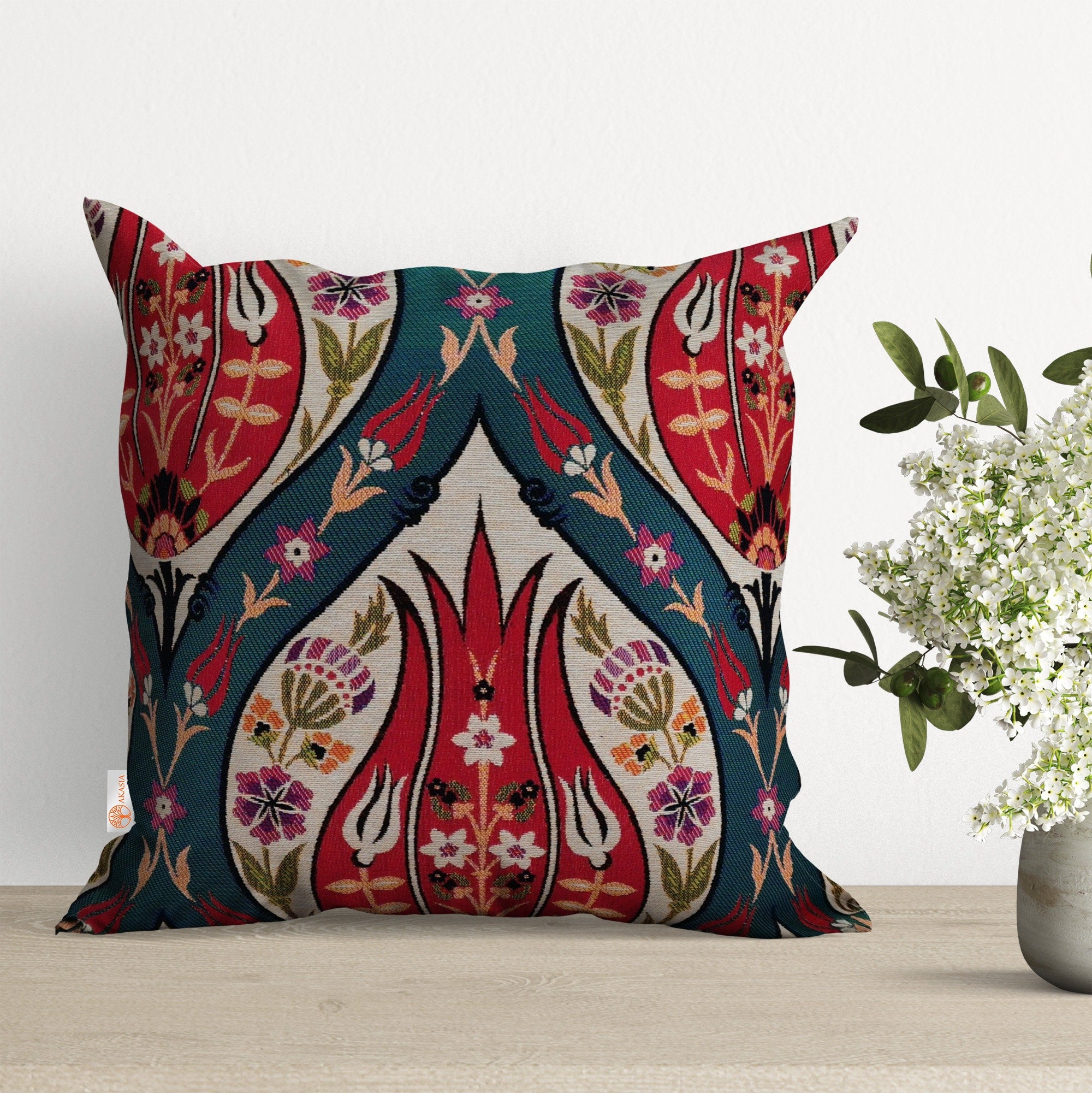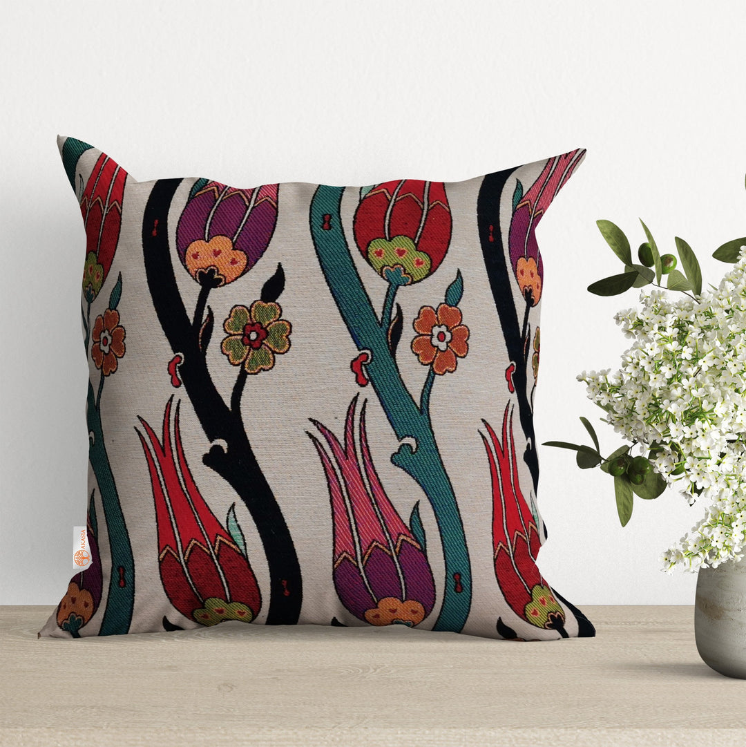 Turkish Tulip Tile Pattern Pillow Cover|Gobelin Tapestry Pillow Top|Woven Ethnic Throw Pillow Case|Handmade Rug Design Kilim Cushion Case