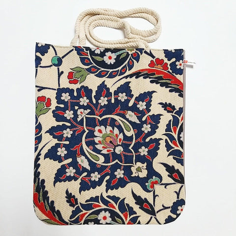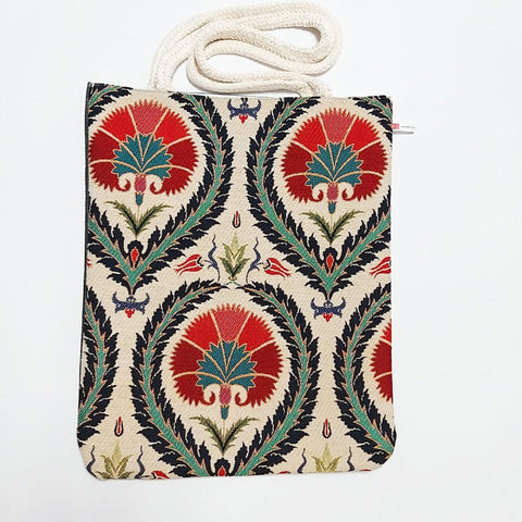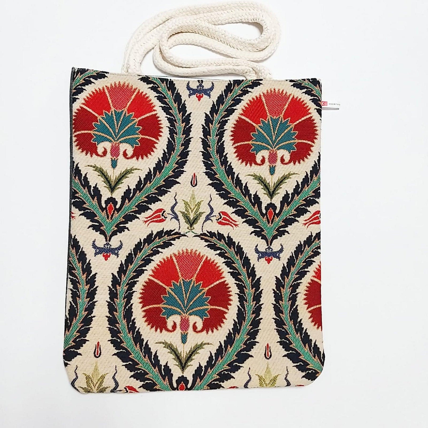 Turkish Tulip Tile Pattern Shoulder Bags|Tapestry Fabric Handmade Bag|Handmade Shoulder Bag|Rug Design Tote Bag|Vintage Style Carpet Bag