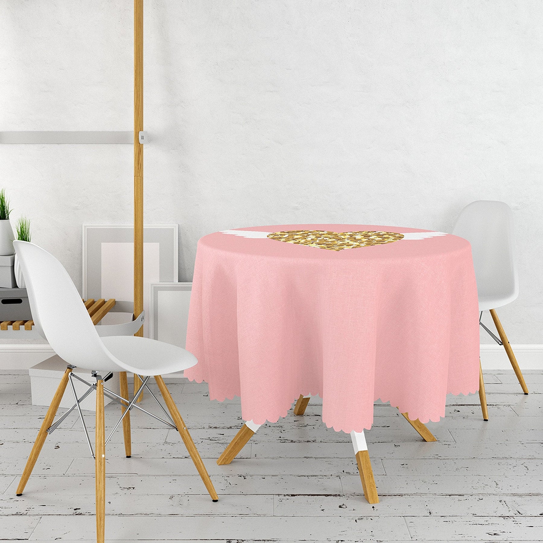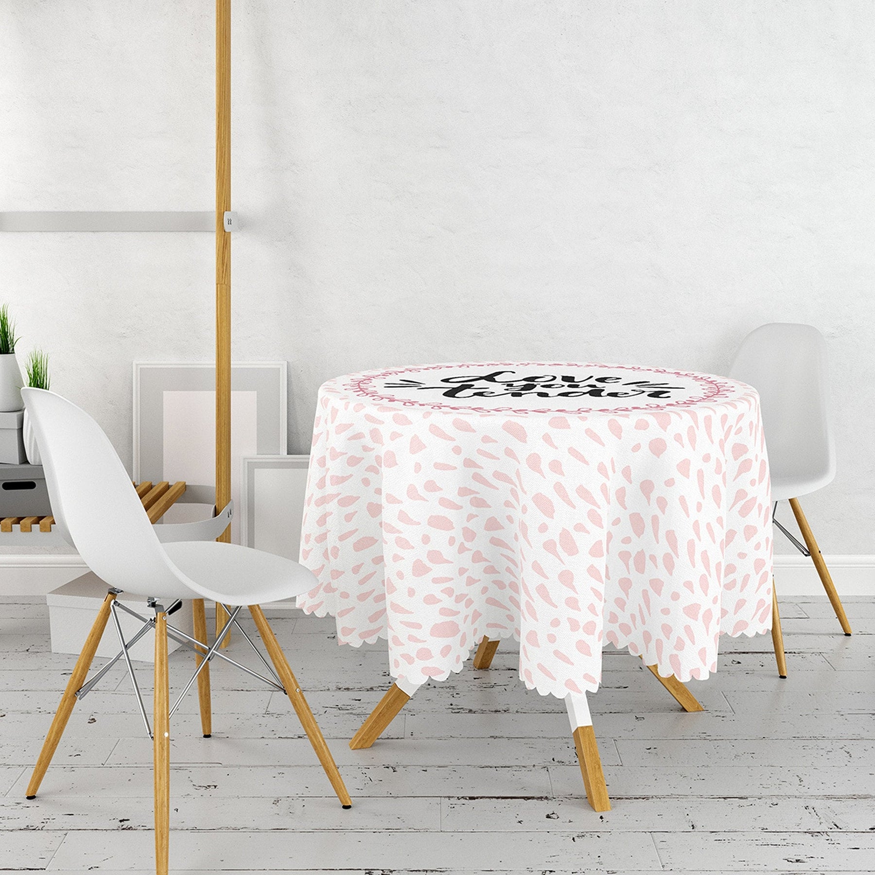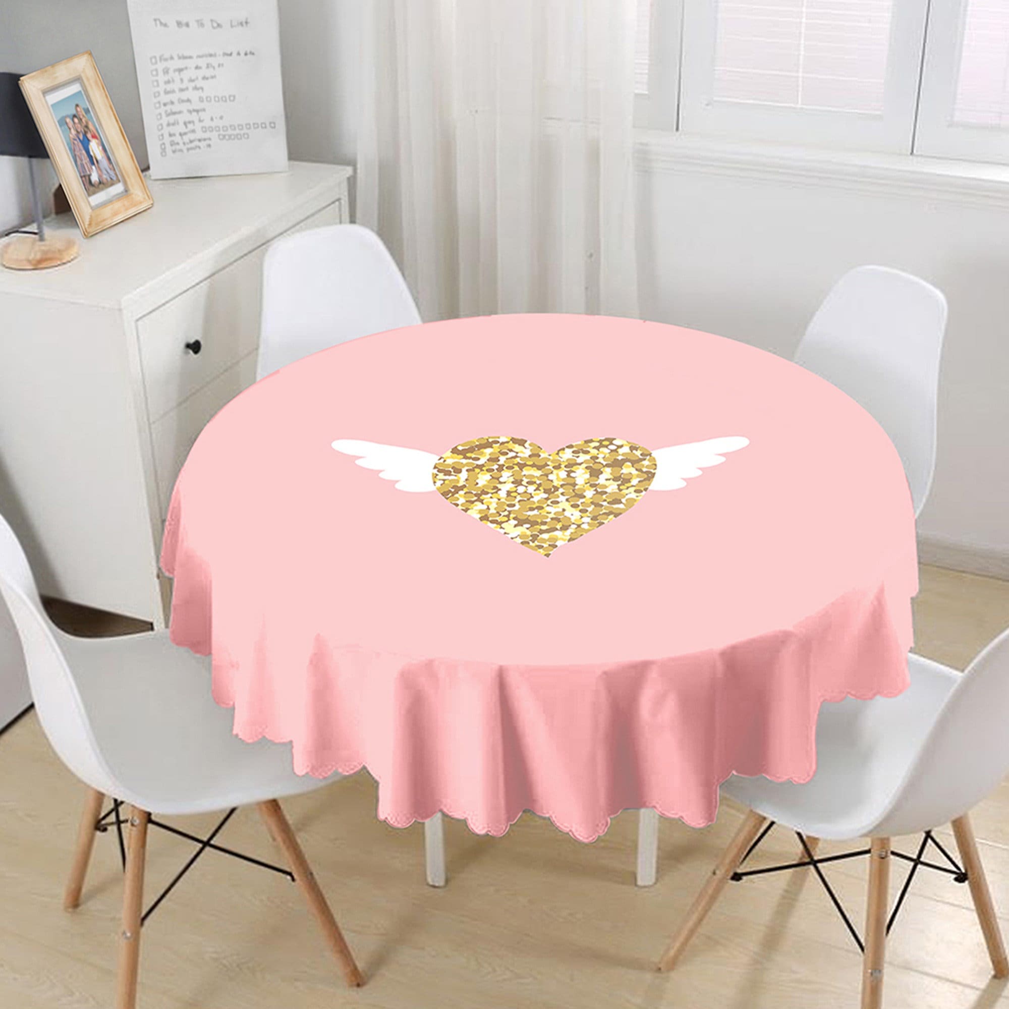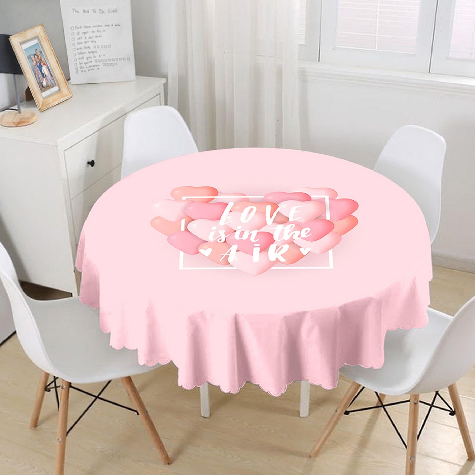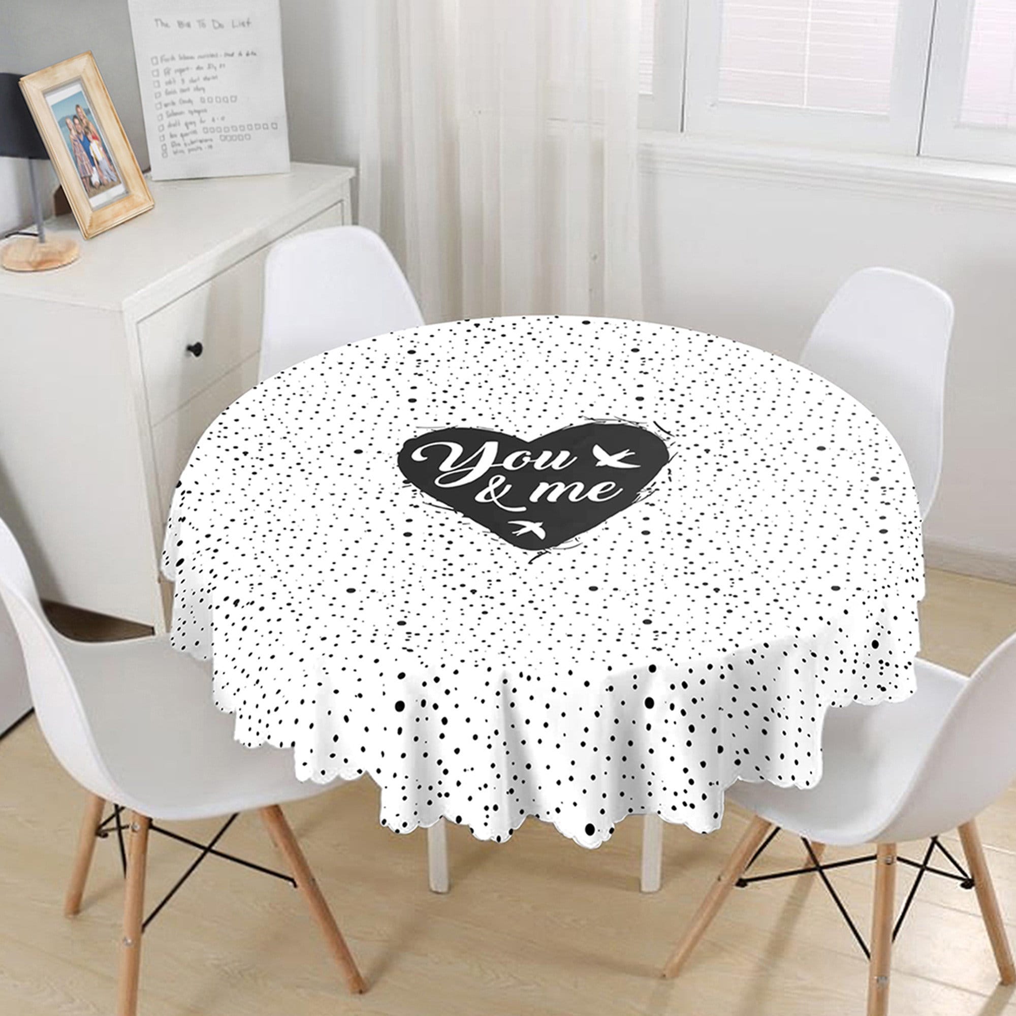 This high quality round tablecloth with Love You Tender, Love is in the Air, You and Me, heart print;