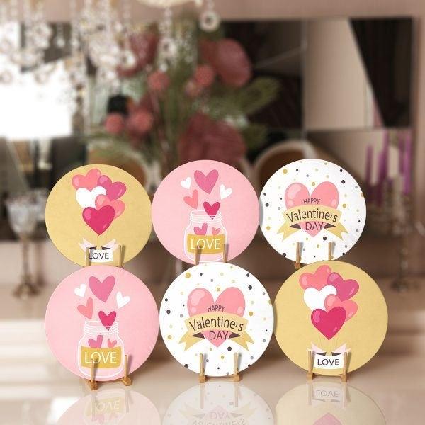 Valentine's Day Placemat|Set of 6 Heart Supla Table Mat|Love Print Round Dining Underplate|Romantic Home Decor|Coaster Gift for Valentine