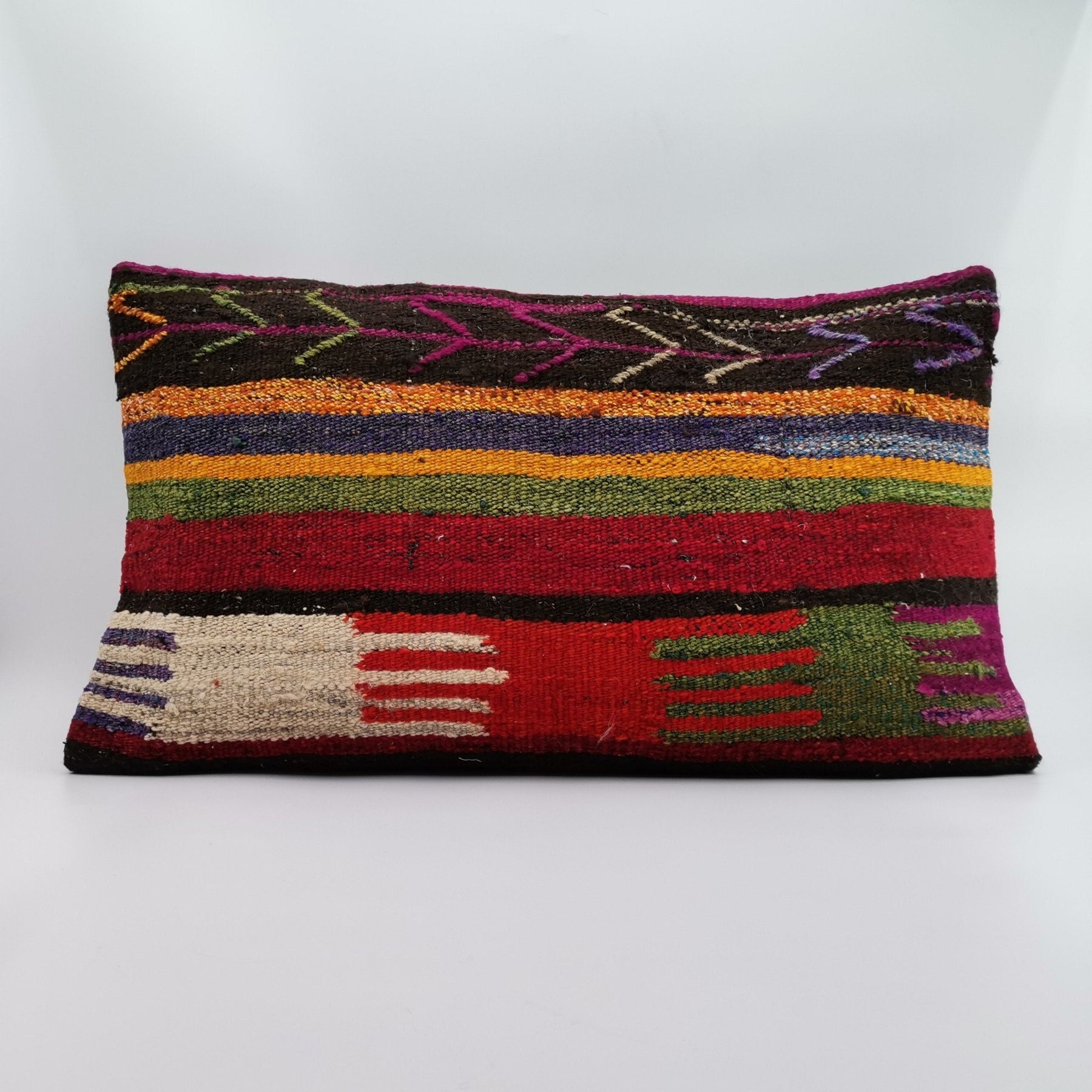 This handmade elegant rectangle Turkish kilim lumbar pillow cover;