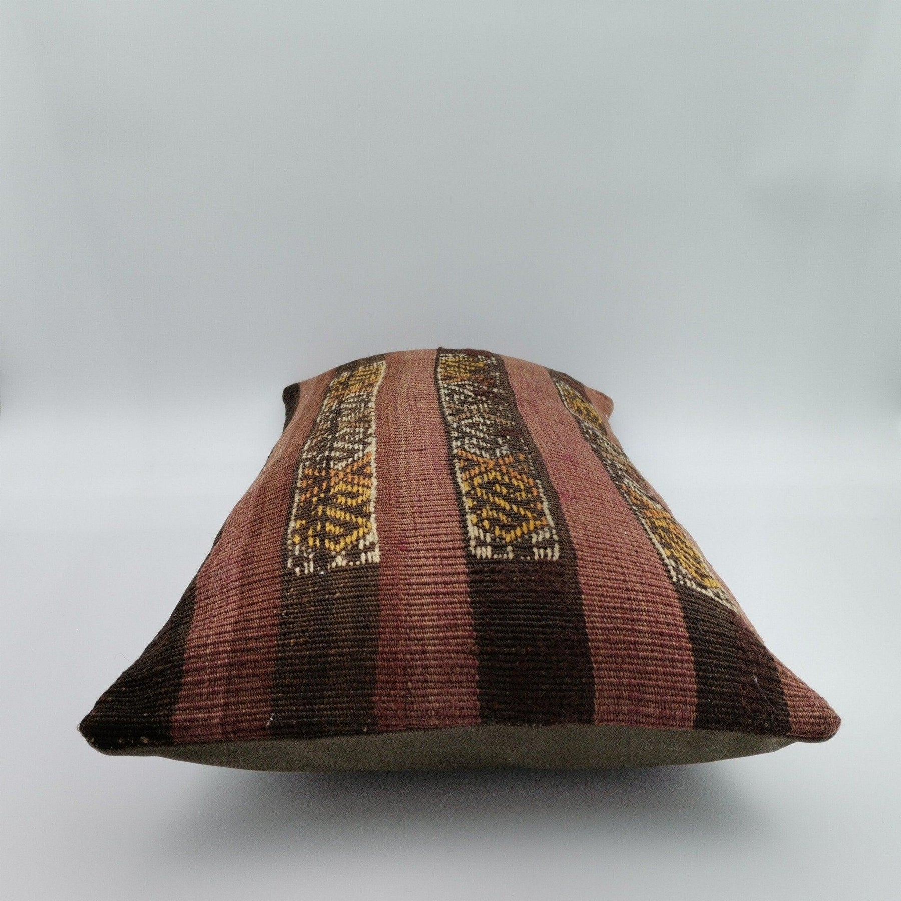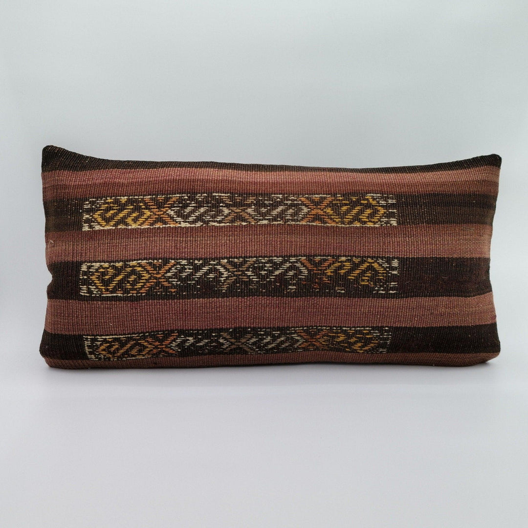 Vintage Kilim Pillow Cover|Rustic Ottoman Kilim Decor|Antique Farmhouse Lumbar Pillowcase|Boho Bedding Decor|Handwoven Rug Cushion 12x24