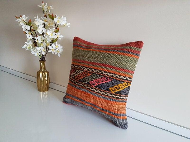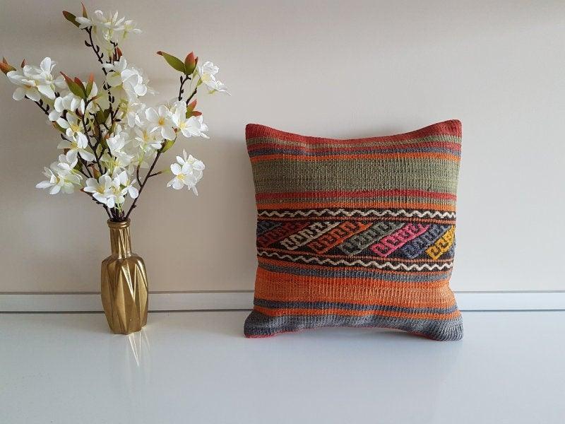 Imagine this housewarming "Vintage Turkish Kilim Pillow" on your sofa/seat to welcome your family and friends!