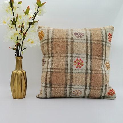 Vintage Kilim Pillow Cover|Turkish Kelim Cushion Case|Antique Anatolian Throw Pillow Top|Boho Bedding Decor|Handwoven Rug Cushion Case 16x16