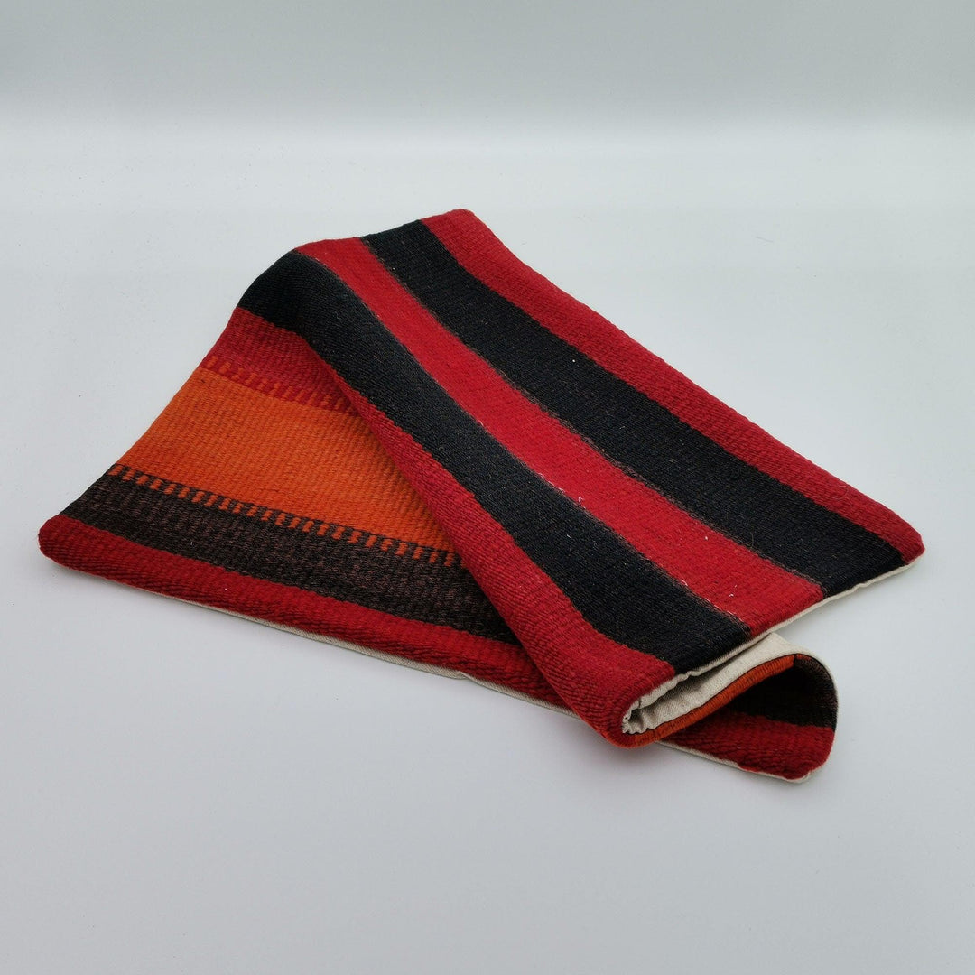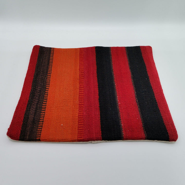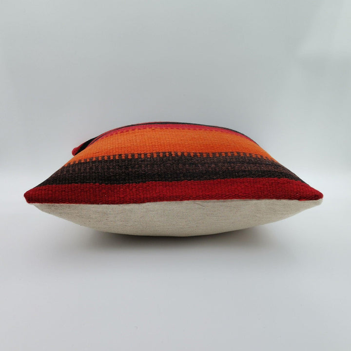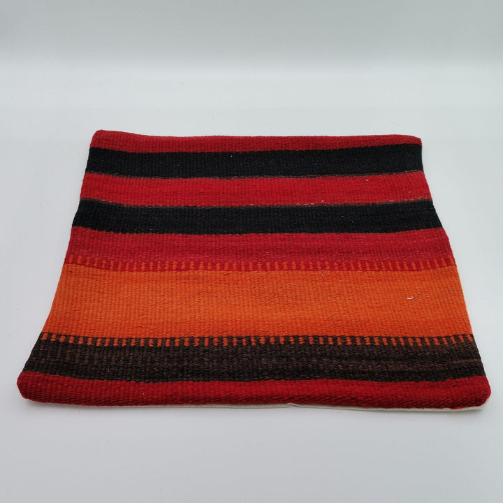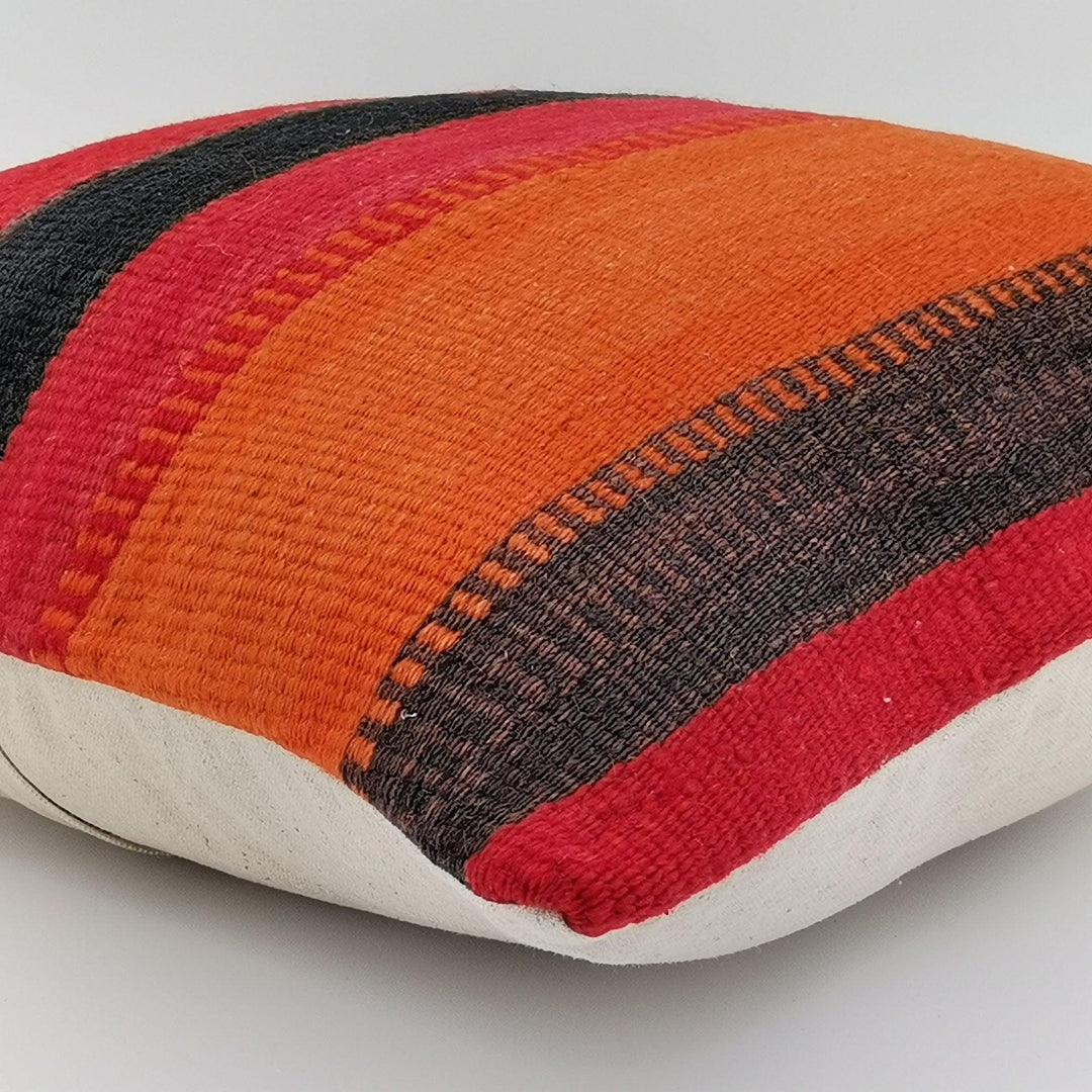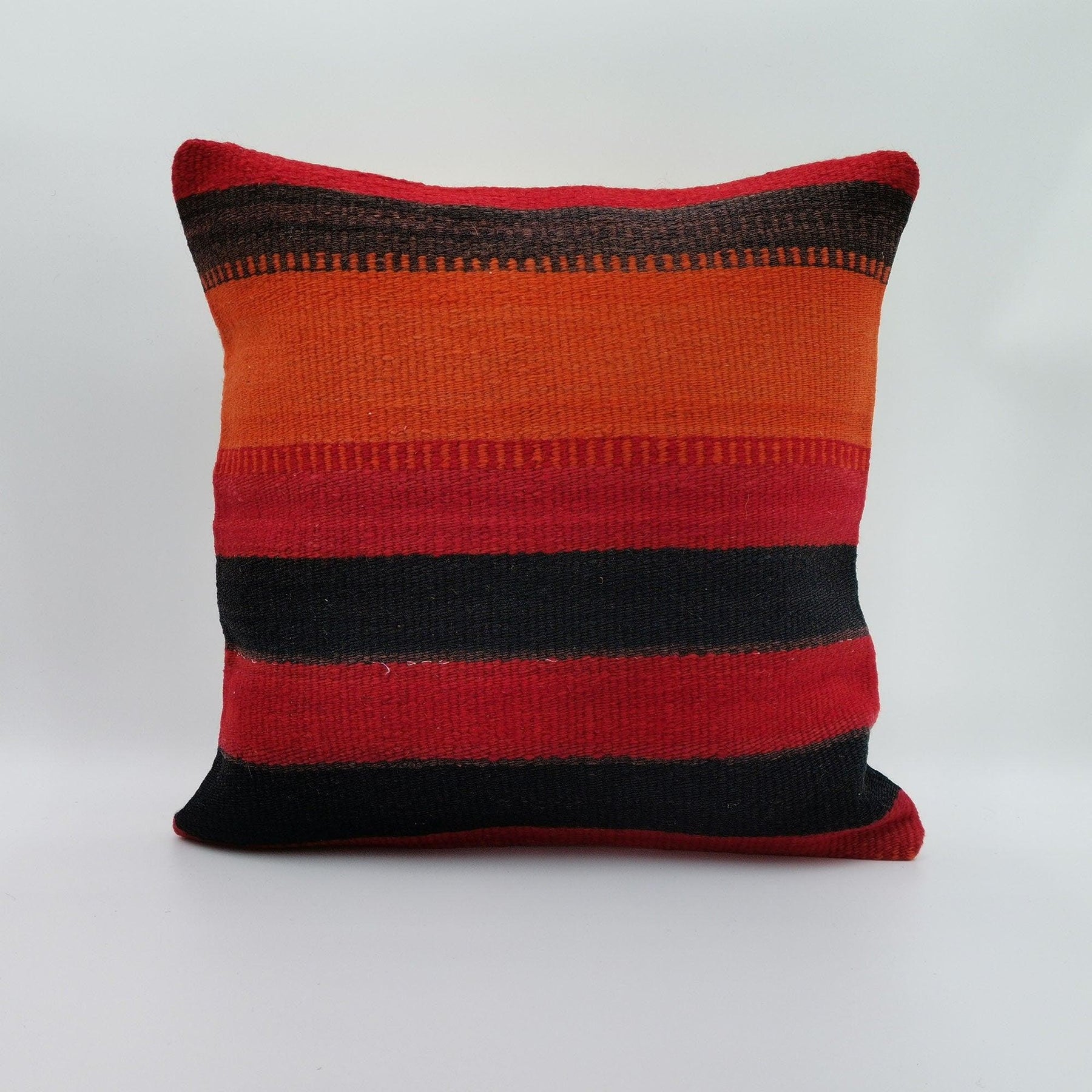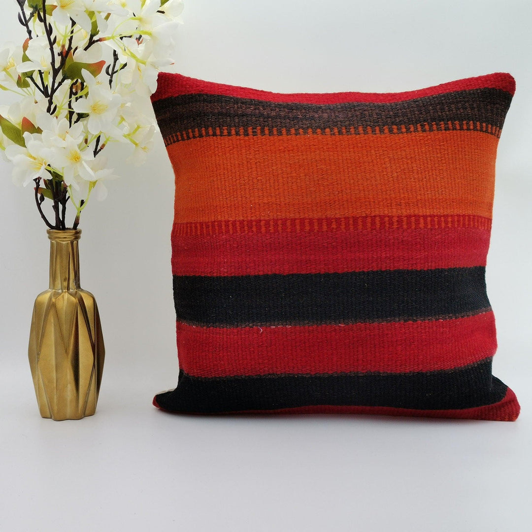 Vintage Kilim Pillow Cover|Turkish Kilim Home Decor|Anatolian Throw Pillow with Stripes|Boho Bedding Decor|Handwoven Rug Cushion Case 16x16
