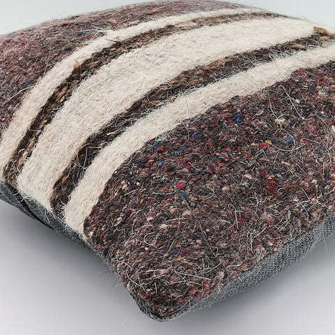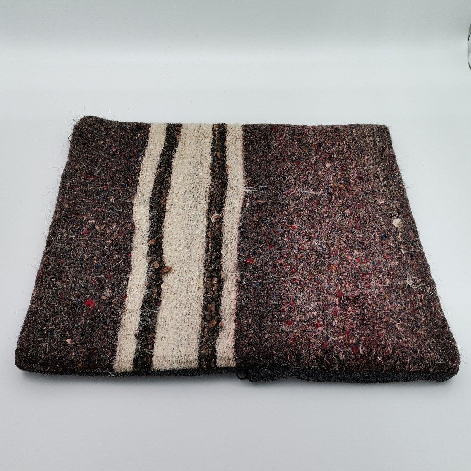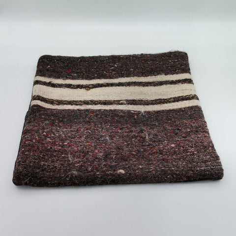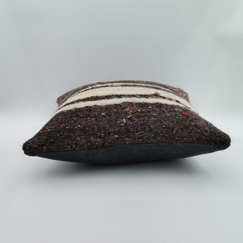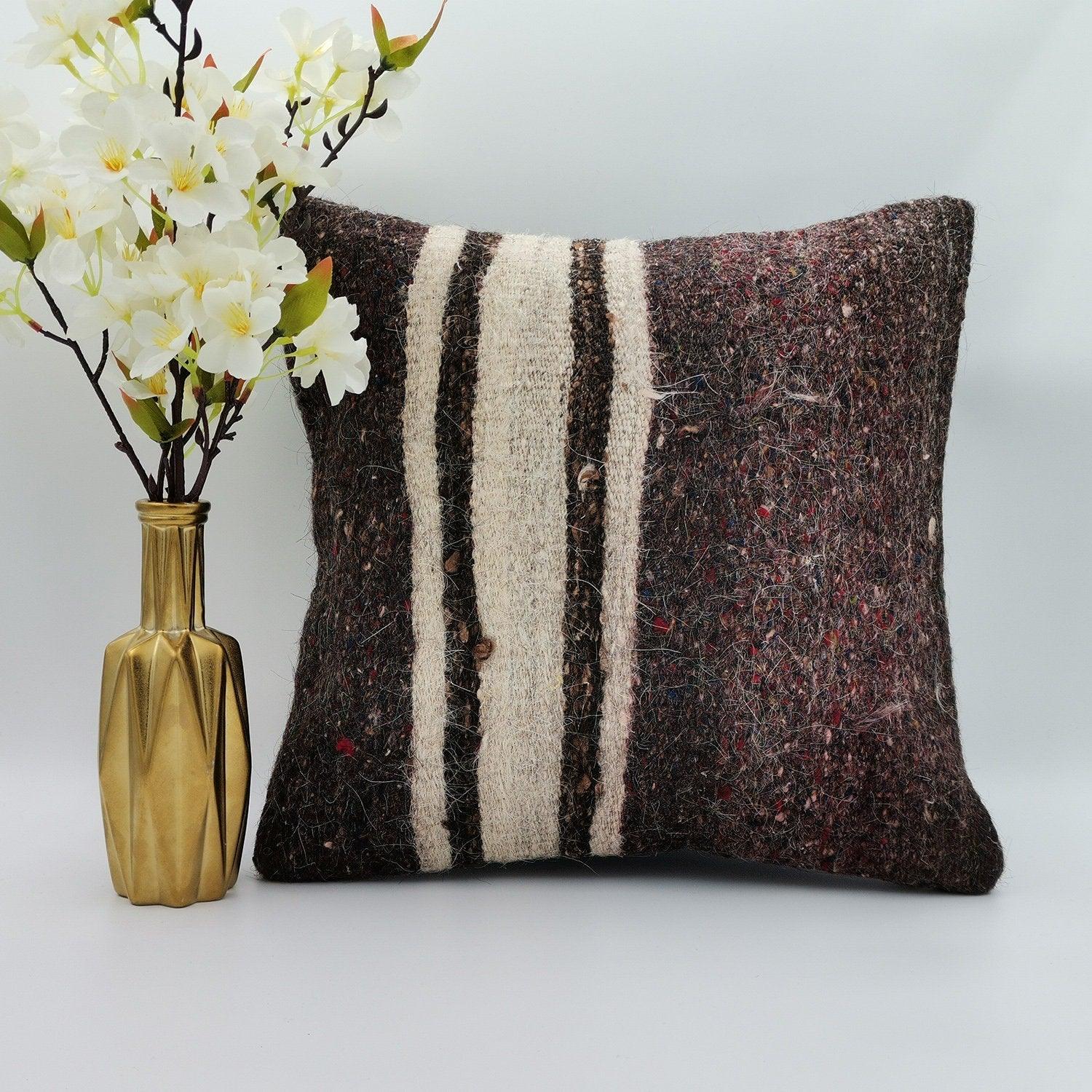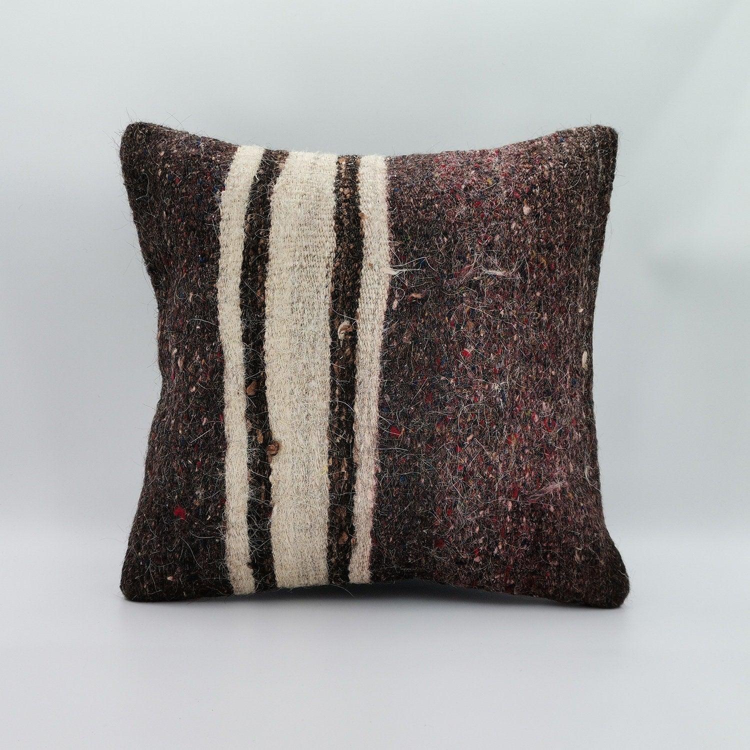 Striped Brown Beige Vintage Turkish Kilim Pillowcase 16x16