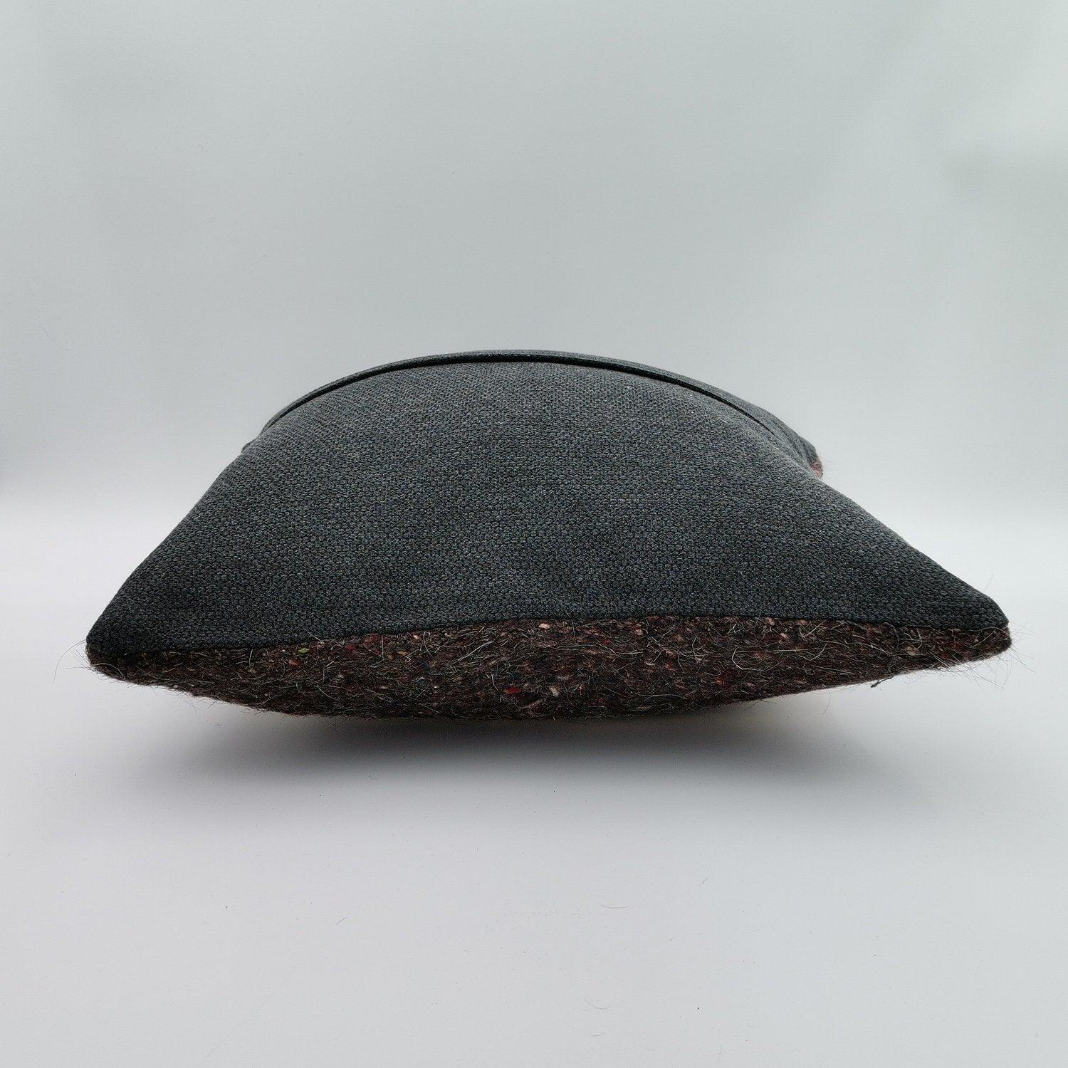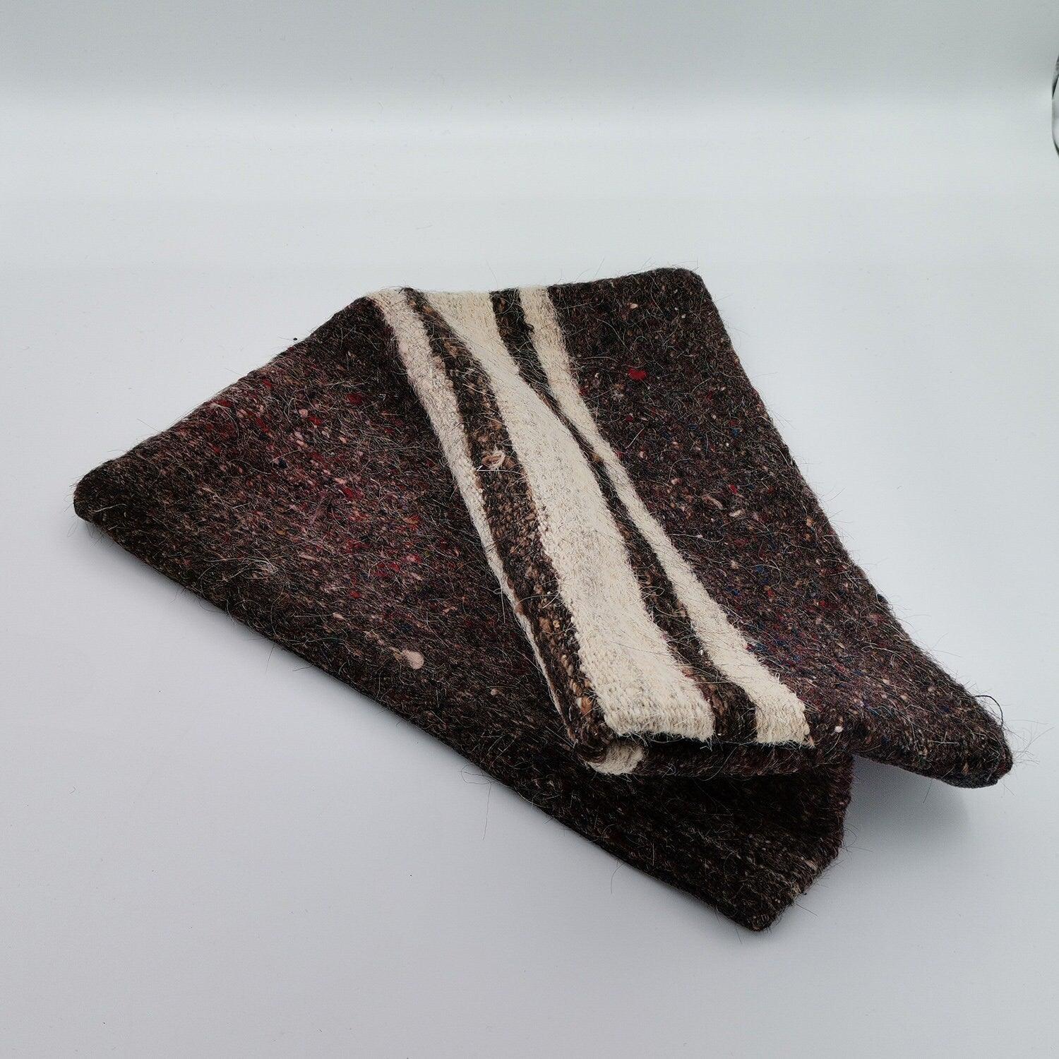 • Is one-sided: the front is made of 100% hand-spun wool and back side is a suitable pure color, made of durable cotton