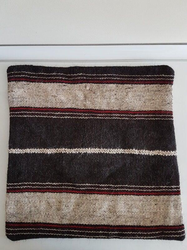 • Is one-sided: the front is made of 100% hand-spun wool and back side is a suitable pure color, made of durable cotton