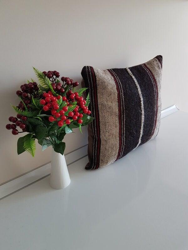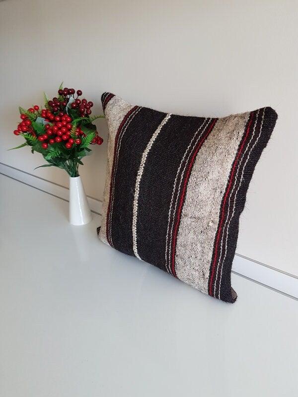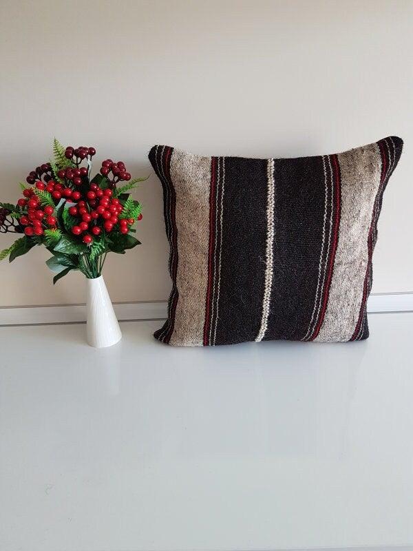 Vintage Kilim Pillow Cover|Turkish Kilim Pillow Cover|Striped Anatolian Throw Pillow Case|Ottoman Rug Pillow Top|Handwoven Rug Cushion 16x16