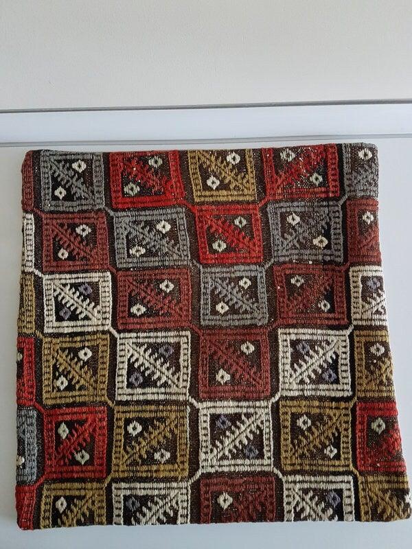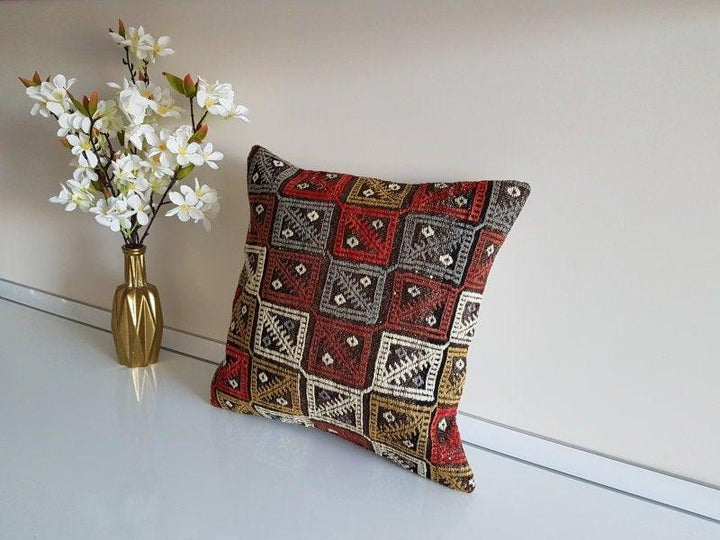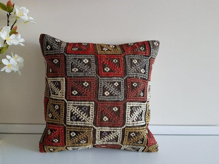 Vintage Kilim Pillow Cover|Turkish Rug Pillow Cover|Antique Ottoman Throw Pillow Cover|Boho Bedding Decor|Handwoven Rug Cushion Case 16x16