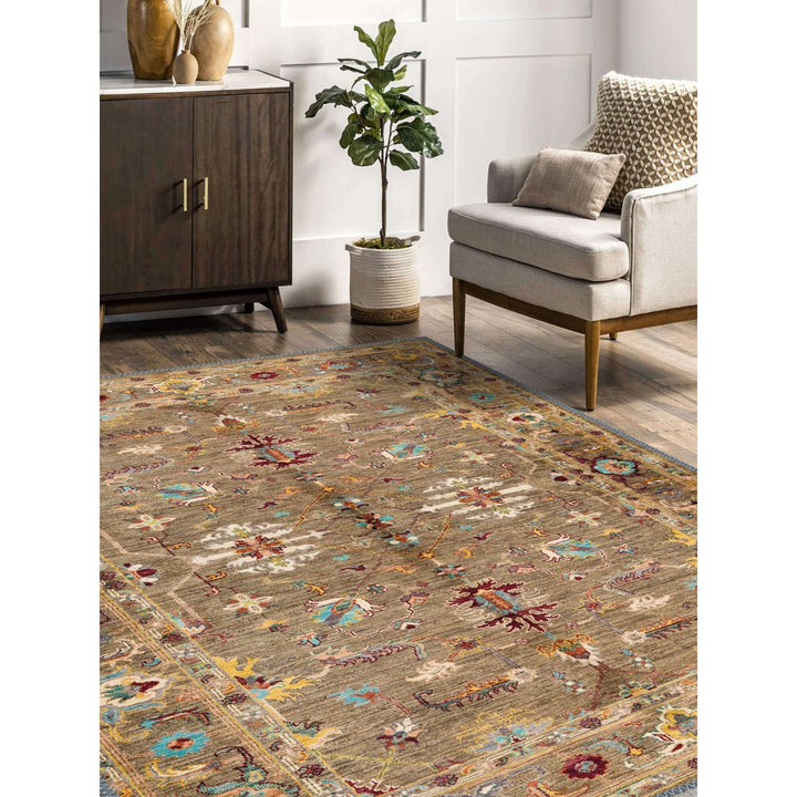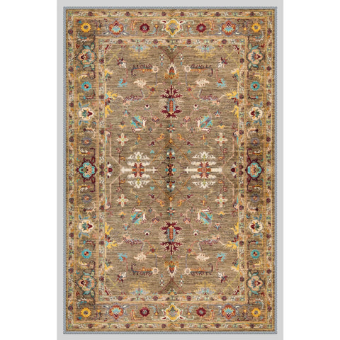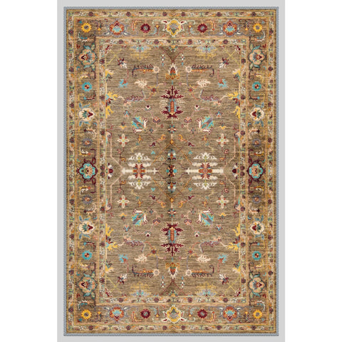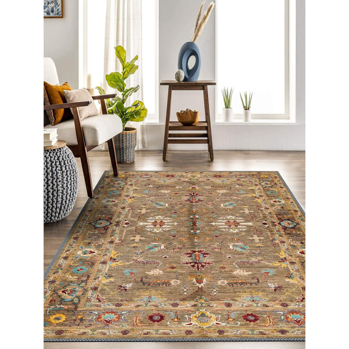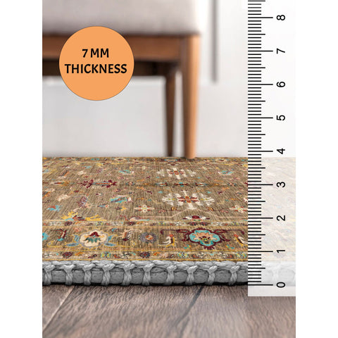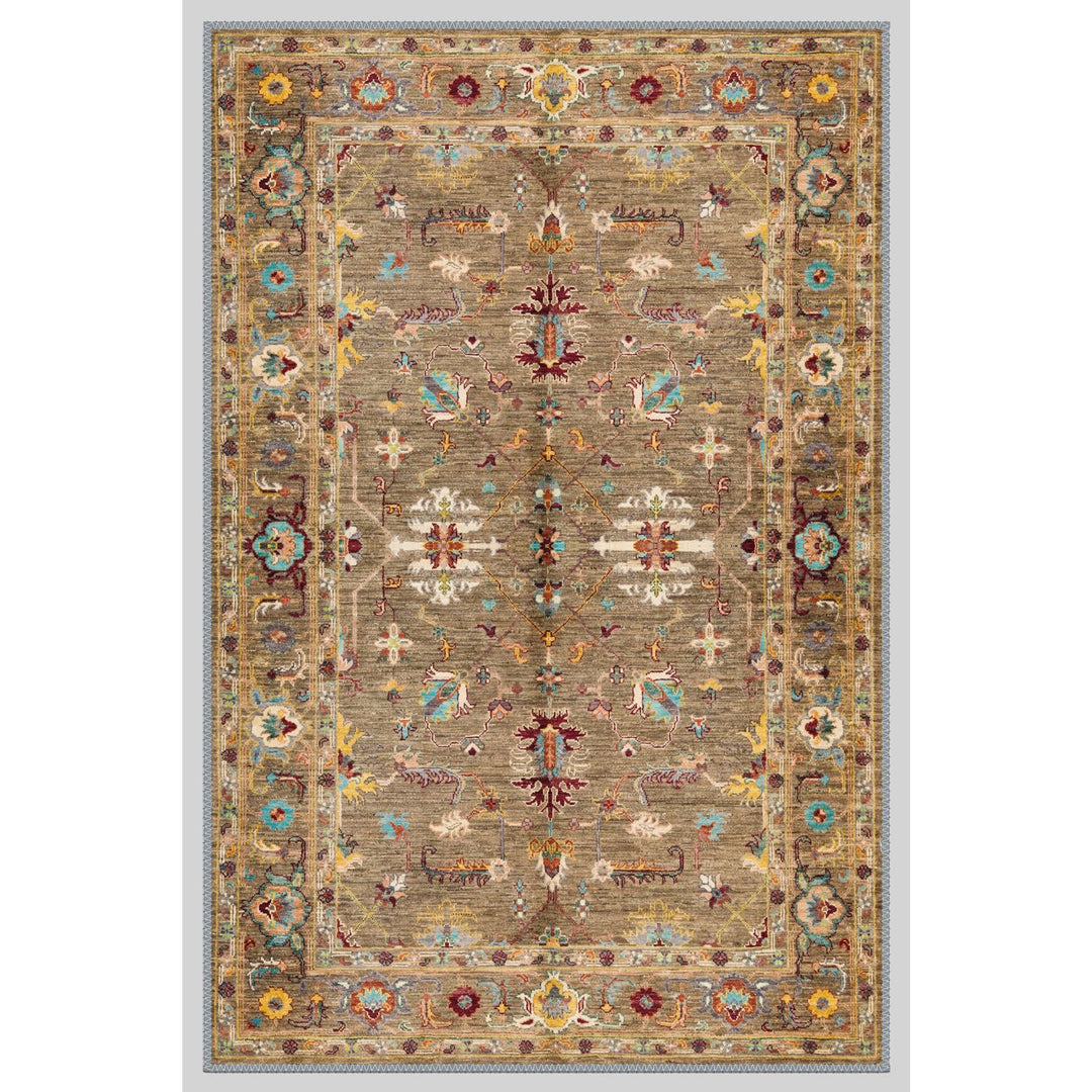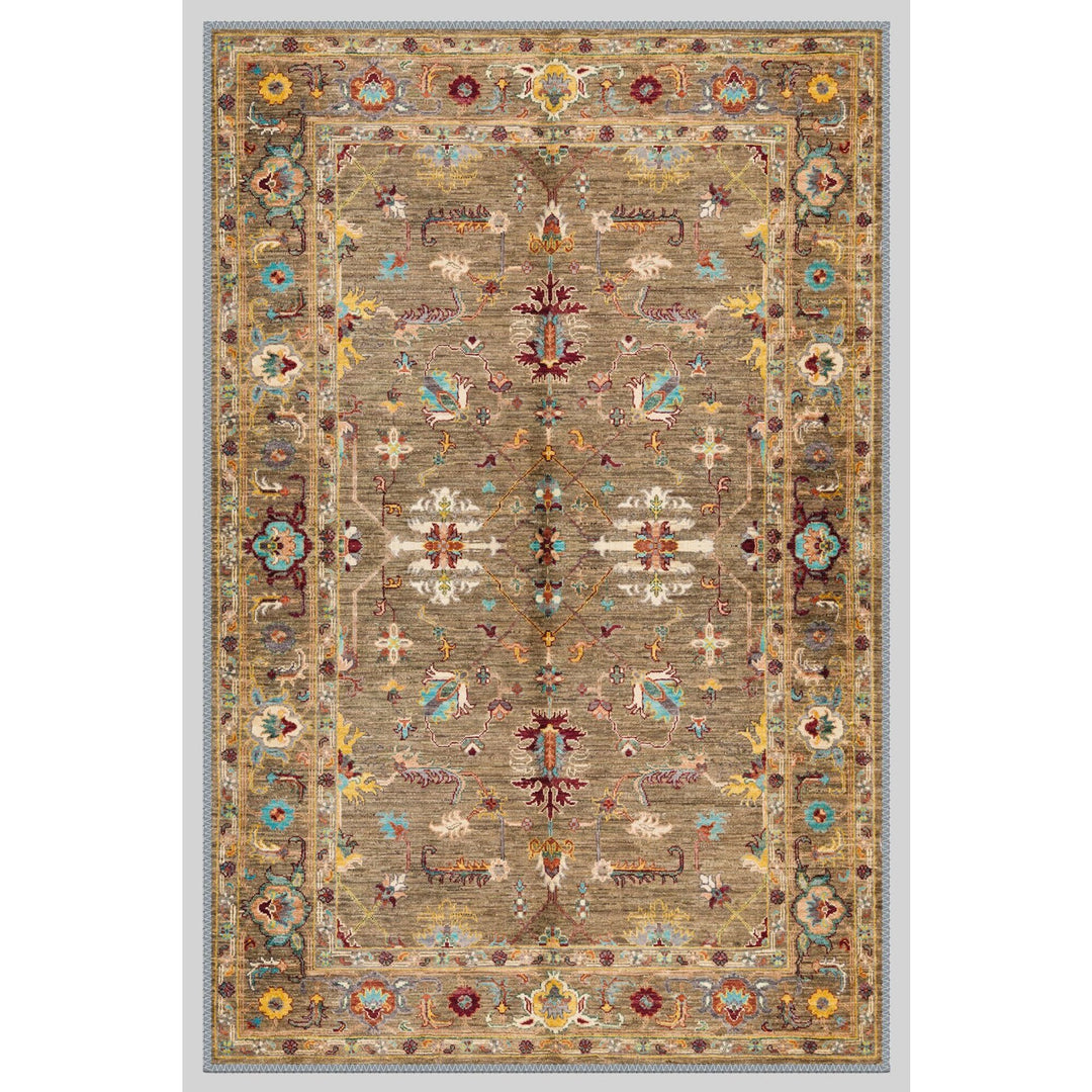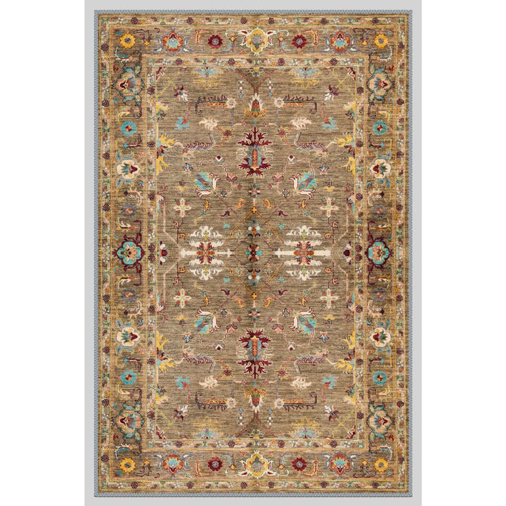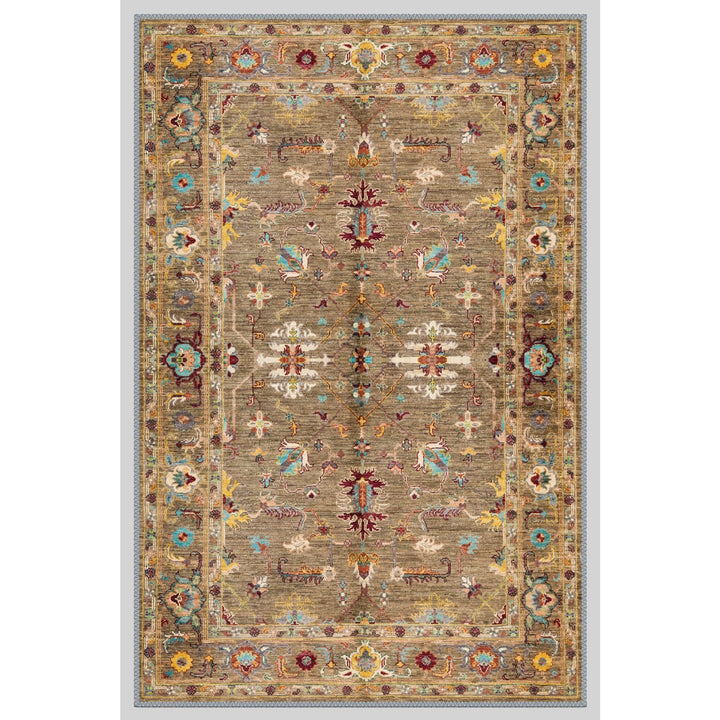 This elegant Machine-Washable floor rug with Ethnic Worn Looking Turkish Kilim design;