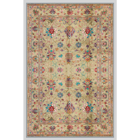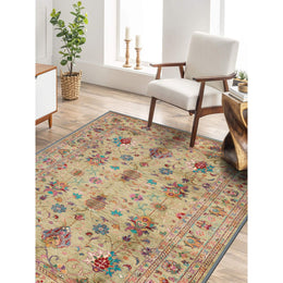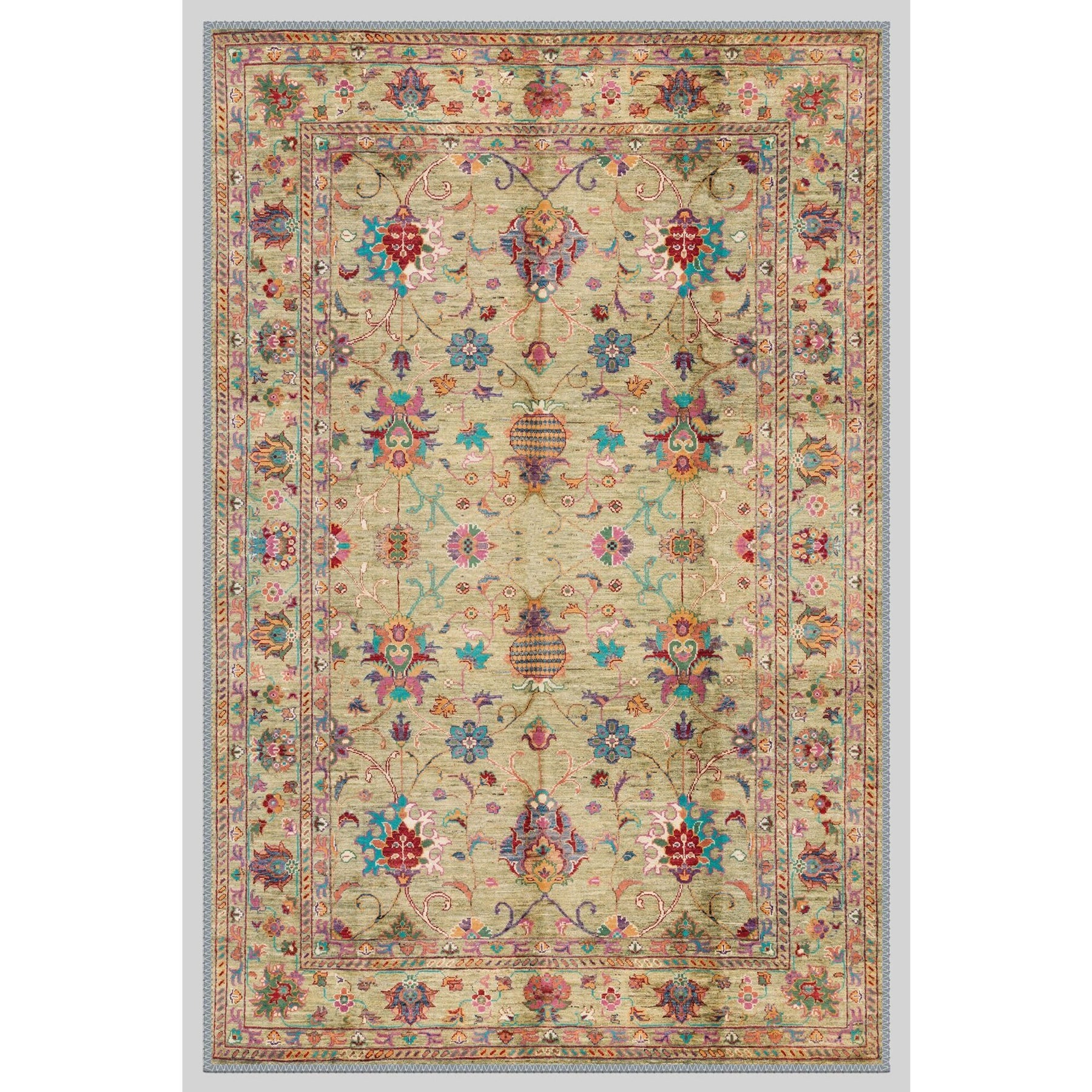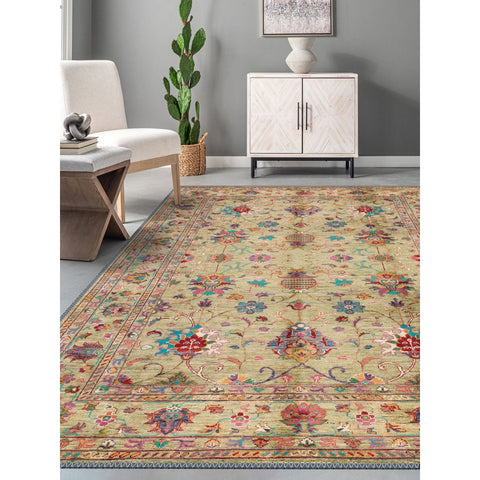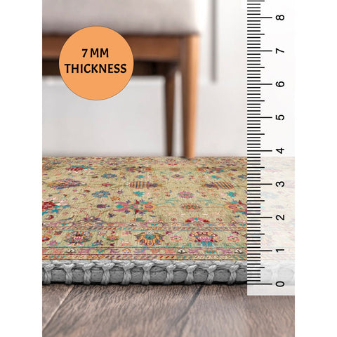 This elegant Machine-Washable floor rug with Ethnic Worn Looking Turkish Kilim design;