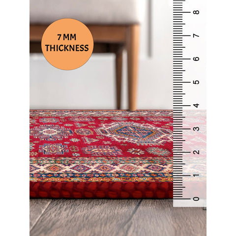 This elegant Machine-Washable floor rug with Ethnic Worn Looking Turkish Kilim design;