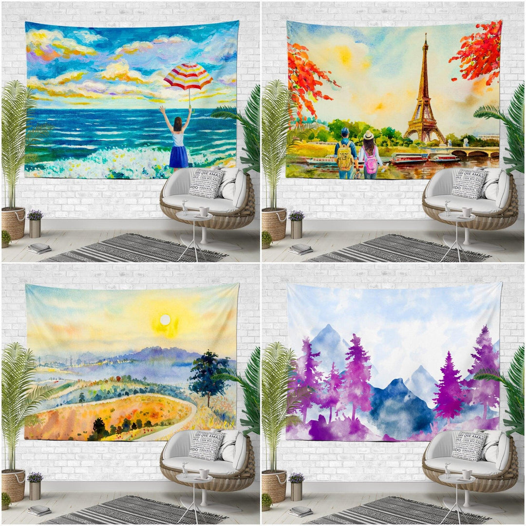 Imagine these "Watercolor Landscape Wall Tapestry" on your wall to welcome your family and friends!