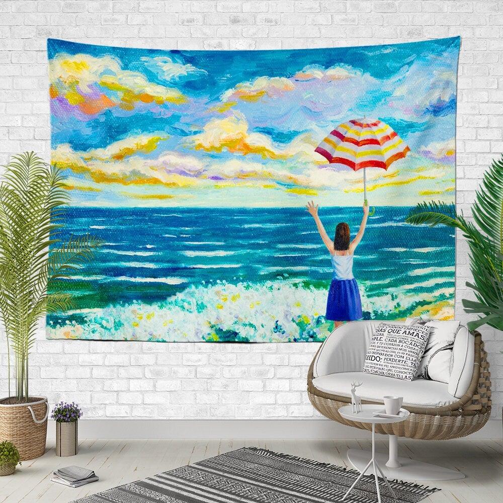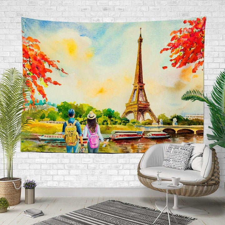 This elegant rectangle fabric wall hanging decor with Woman on The Beach, Eiffel Tower, Purple Trees and Sunny Day reflect your life perspective and;