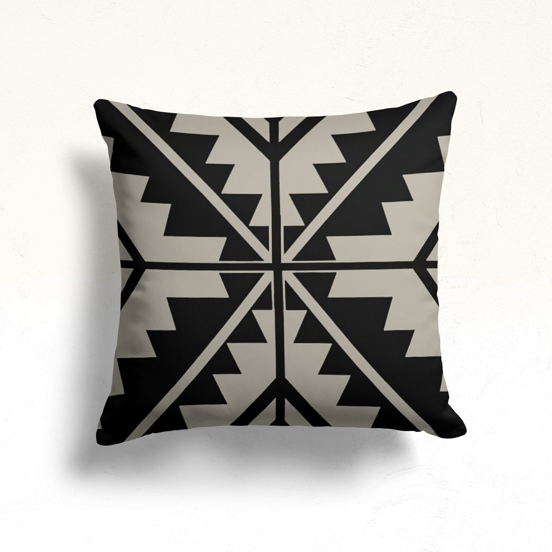 These elegant square decorative farmhouse throw pillow covers with geometric Aztec print;