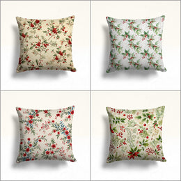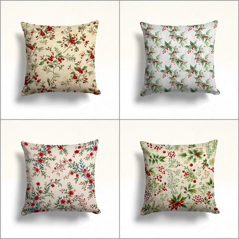 These elegant square decorative throw pillow covers with winter theme, red berry, flower, green leaves print;