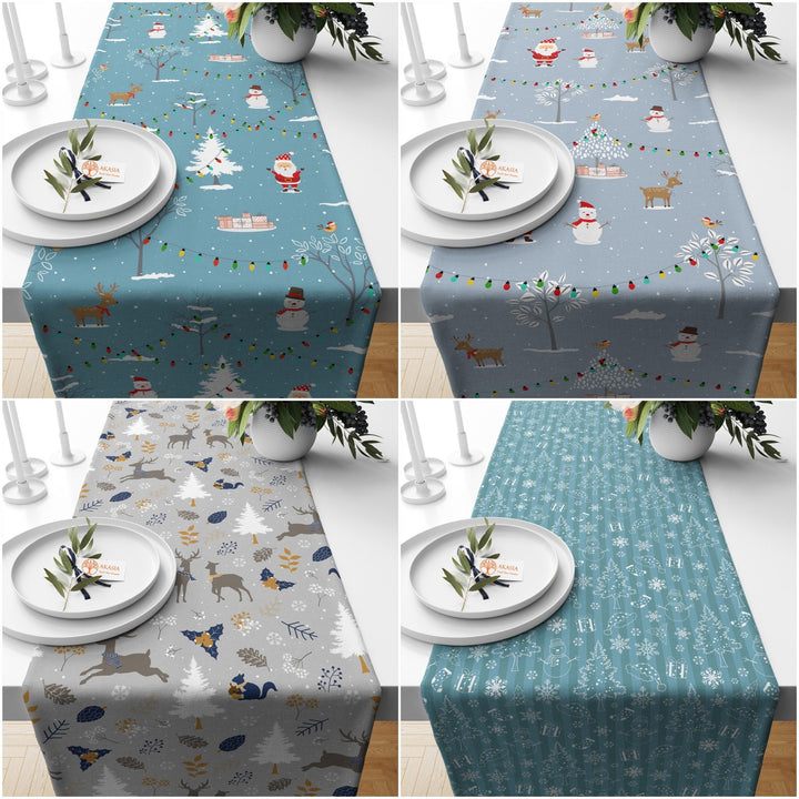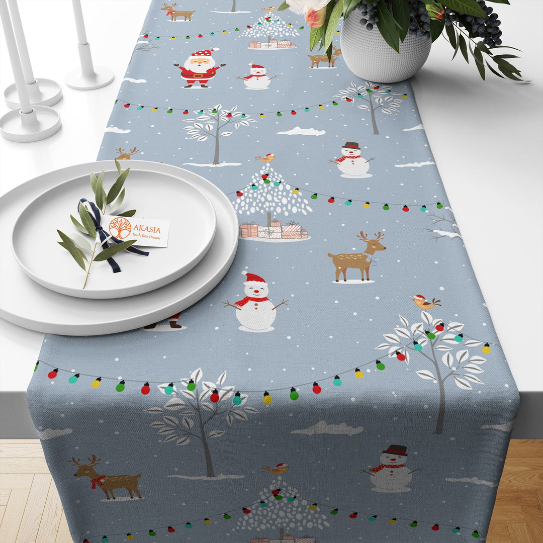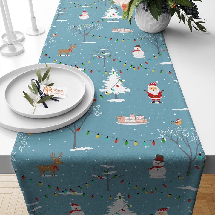 This high quality, farmhouse style table decor with winter, deer, pine tree, snowman, Santa Claus, Xmas print;