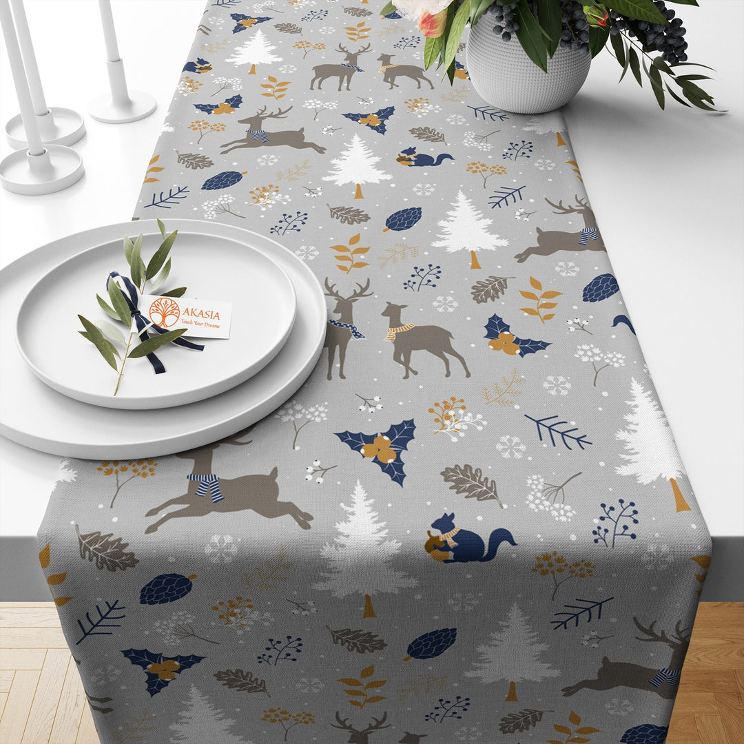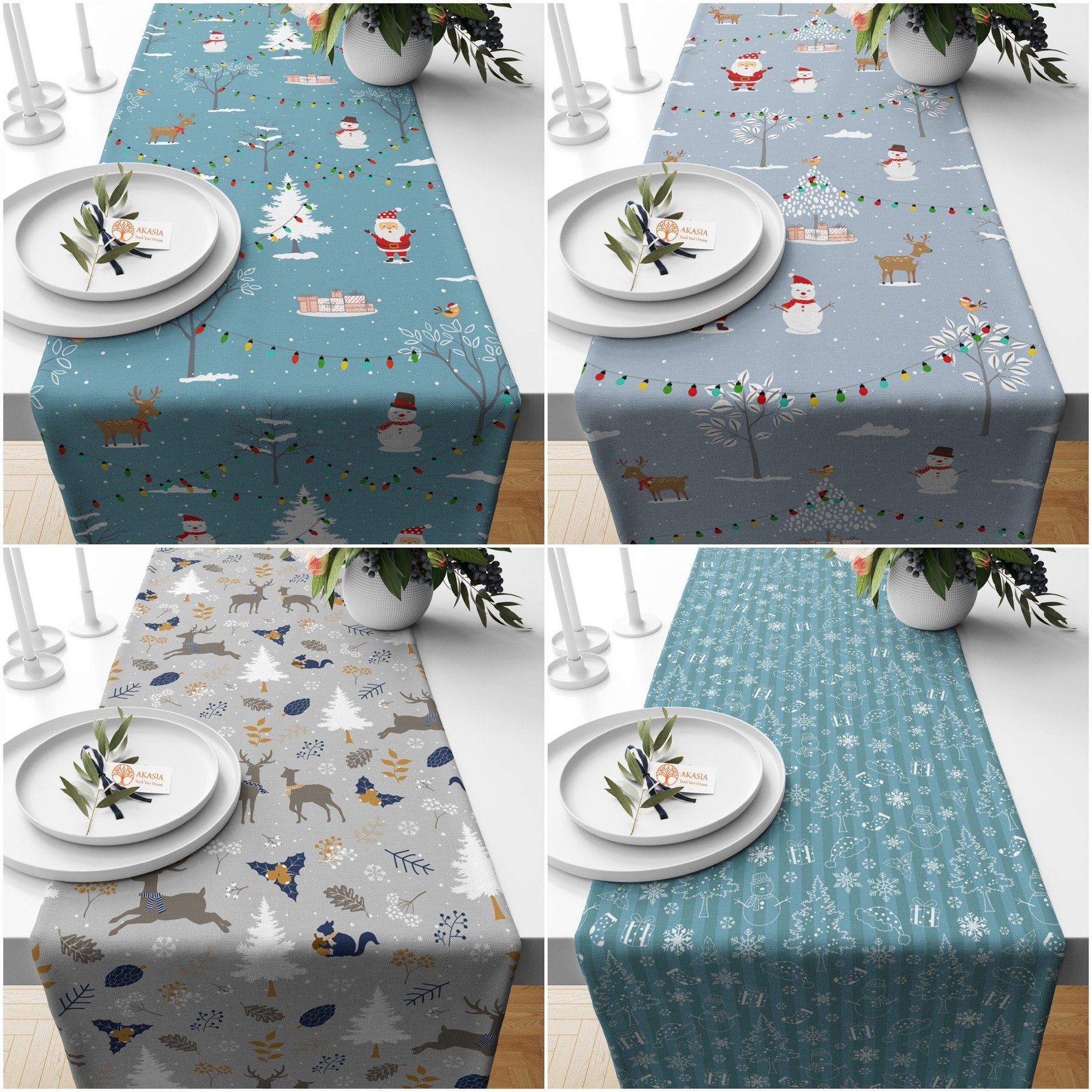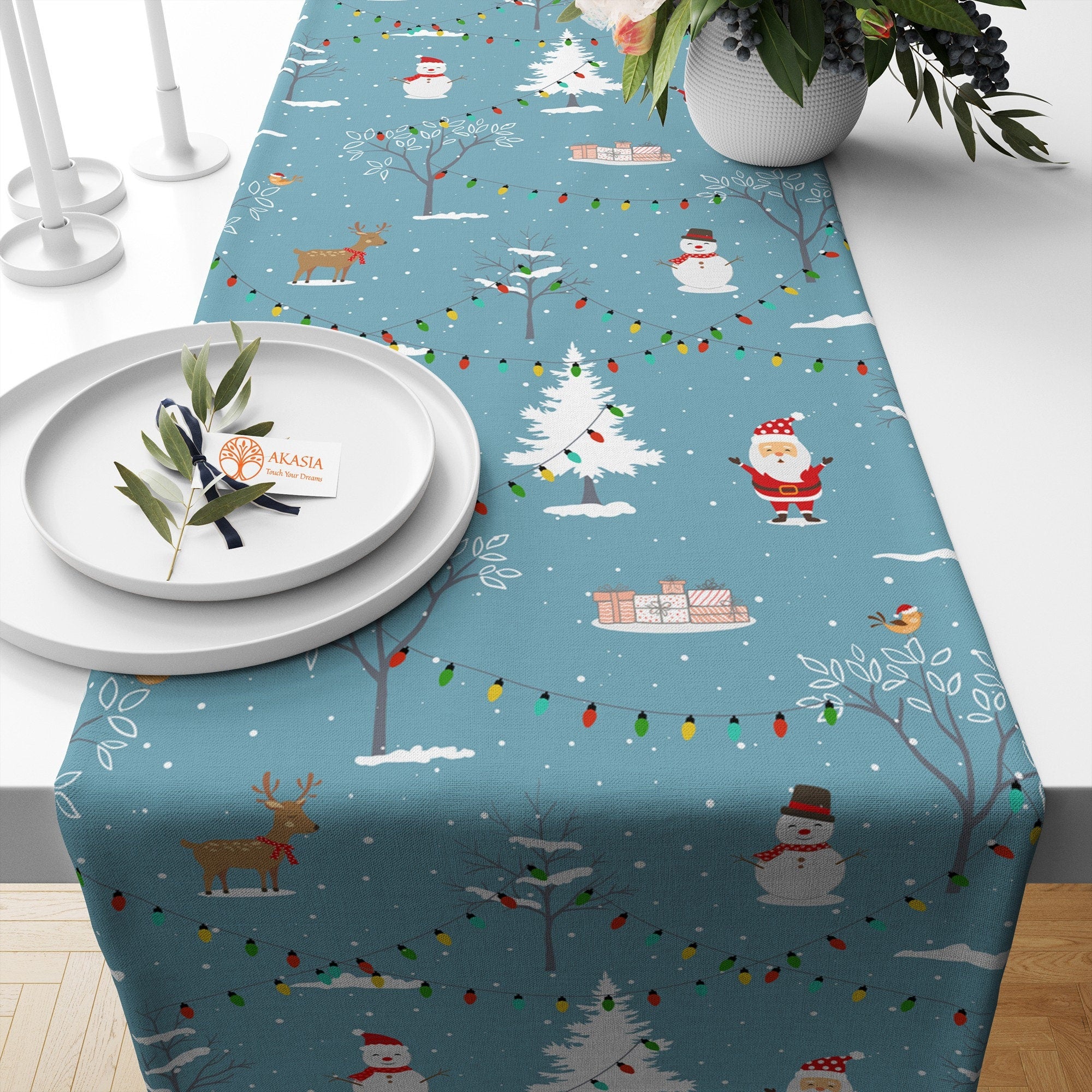 Winter Table Runner|Deer Print Kitchen Decor|Pine Tree Table Sheet|Snowman Table Decor|Santa Claus Table Cover|Xmas Tablecloth for Party